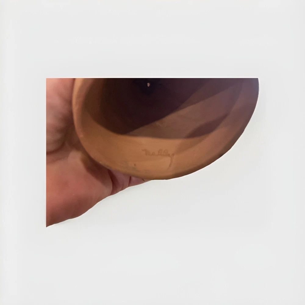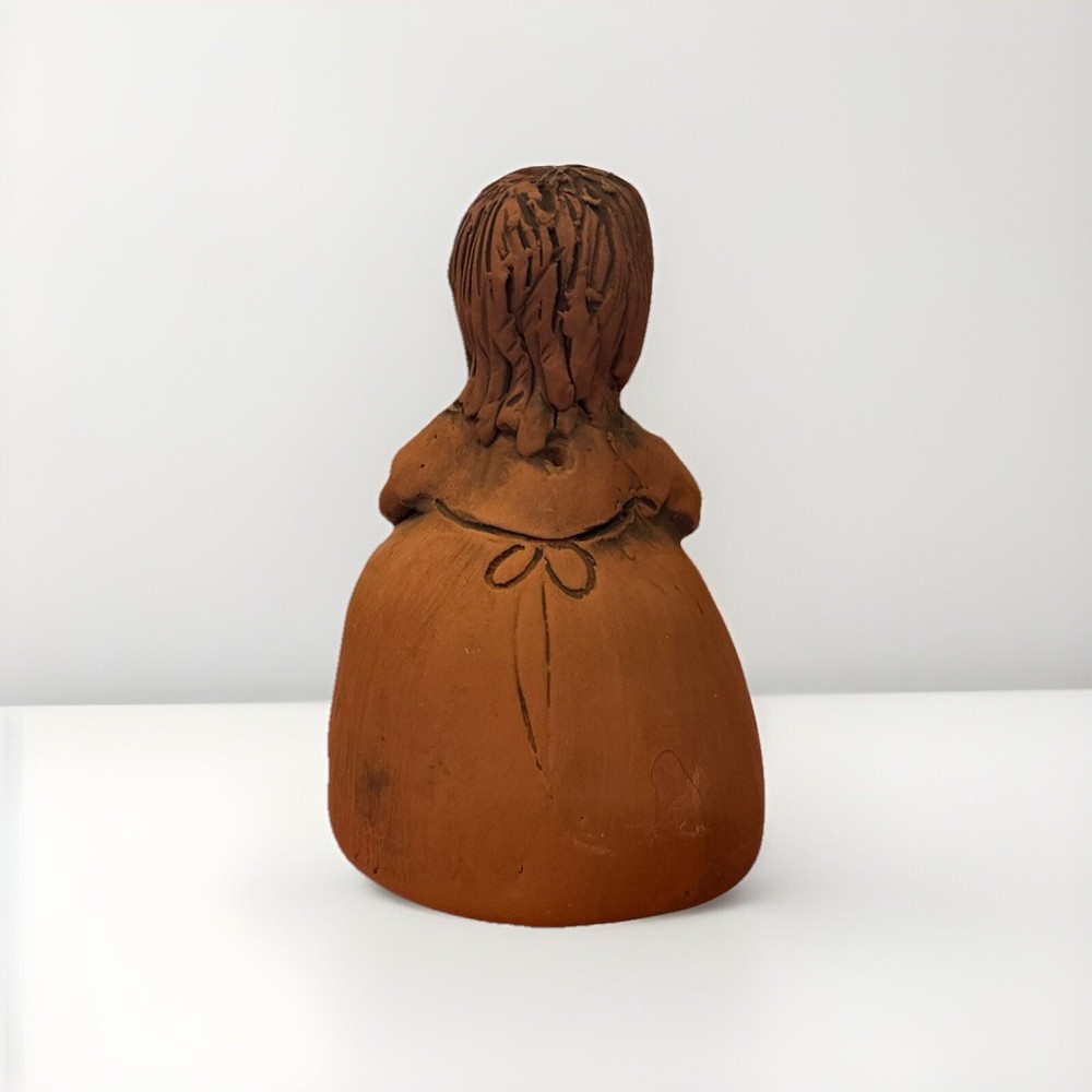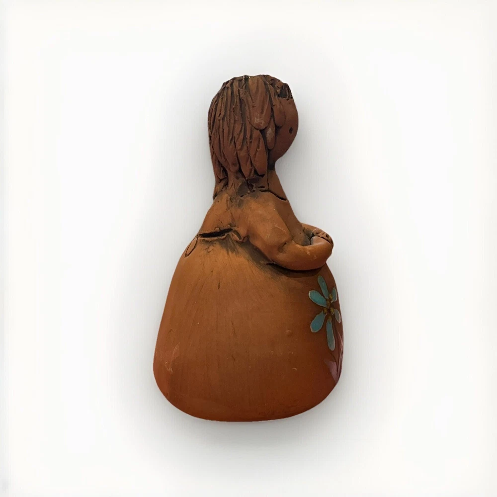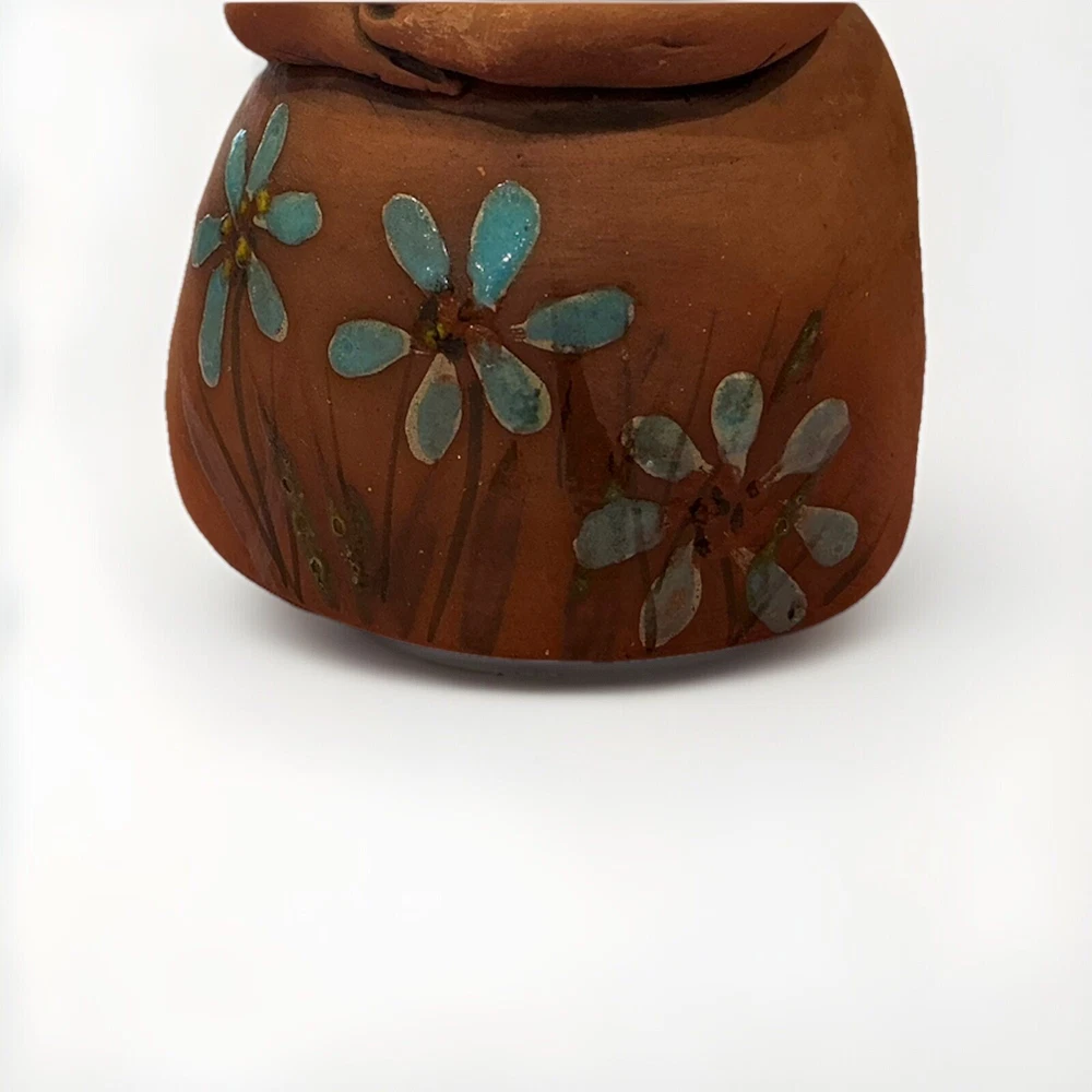 This charming handmade pottery piece is a delightful addition to any collection! The bell-shaped girl features delicate glazed blue flowers and a lovely partial glaze finish. Signed by artist Nelly, it’s a beautiful vintage studio piece with great craftsmanship. At 4.5” tall, it’s the perfect size for display. Excellent condition—such a sweet find!