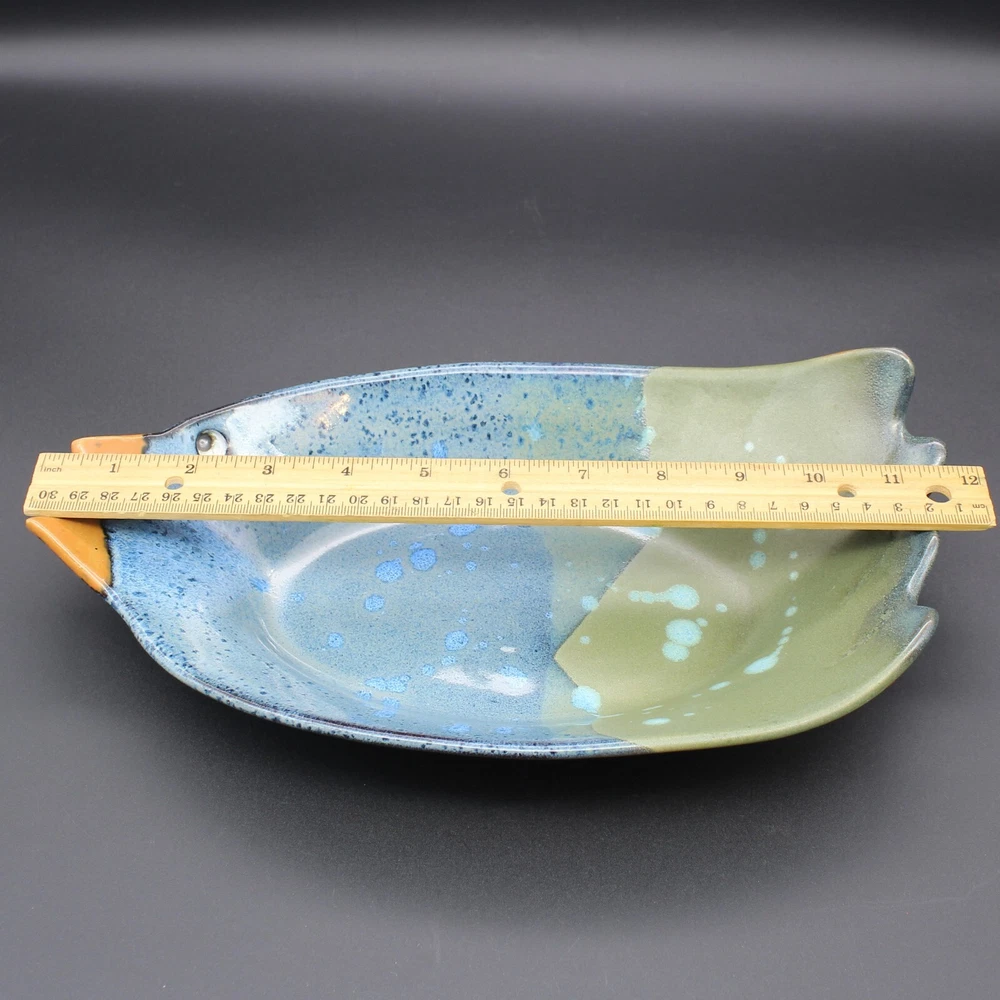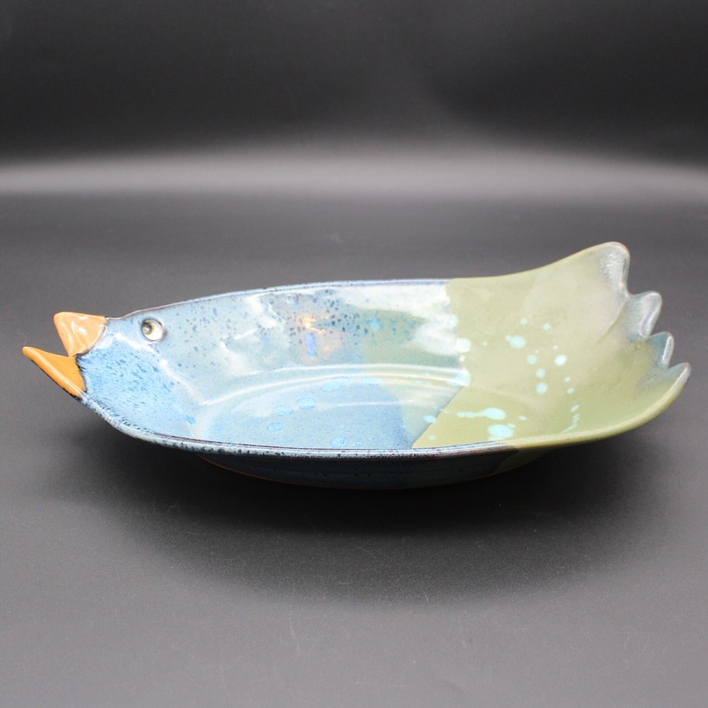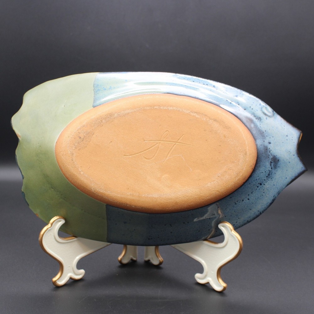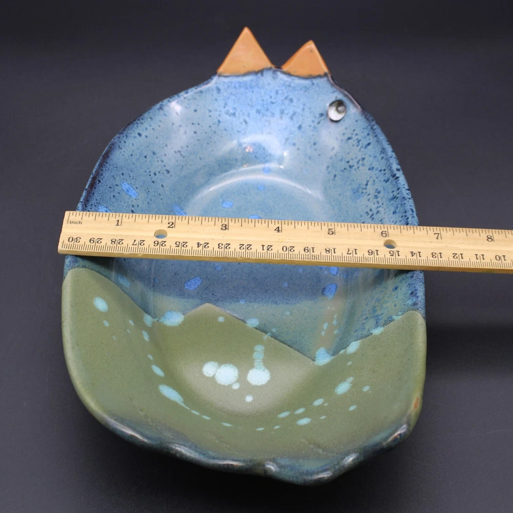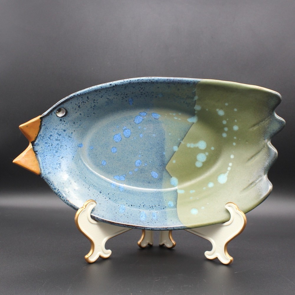 Studio Art Pottery Bird Chicken Shaped Dish Bowl Platter Blue Green Signed 12" x 6.5" Great condition - no chips or cracks, signed "St" on reverse