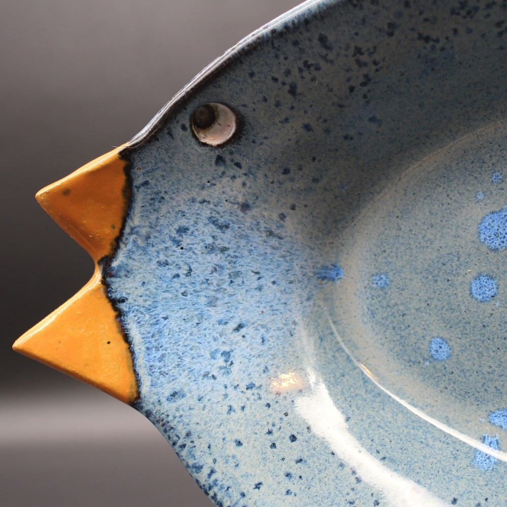 Absolutely love this unique handcrafted piece! The vibrant blue-green glaze is stunning, and the chicken-shaped design adds so much charm. Perfect as a decorative accent or functional dish. The craftsmanship is evident, and it's in flawless condition—no chips or cracks. The artist's signature ("St") adds authenticity. A fantastic find for any pottery or bird lover! Highly recommend.