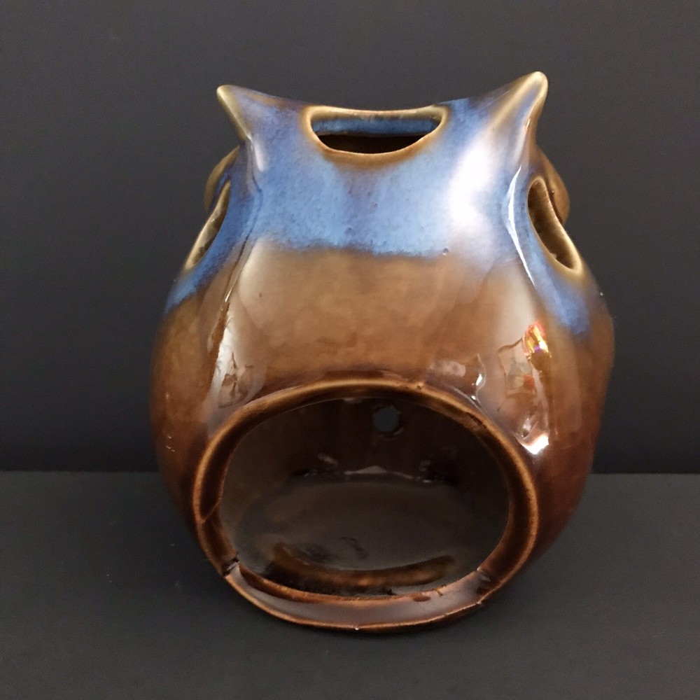 Art Pottery Owl Candle Holder Brown Blue Drip CERAMIC OWL TEA LIGHT HOLDER MID CENTURY STYLE BOHO DRIP GLAZE CANDLE HOLDER. Beautiful blue drip glaze over brown. Excellent Pre-Owned Condition.