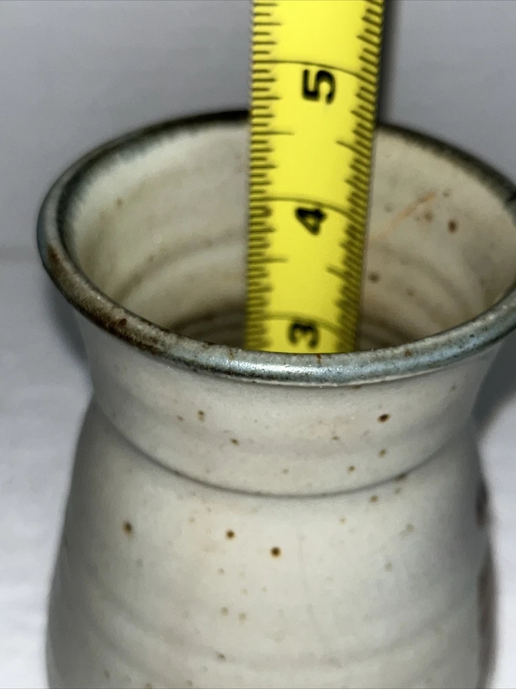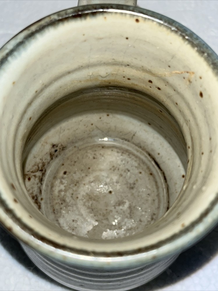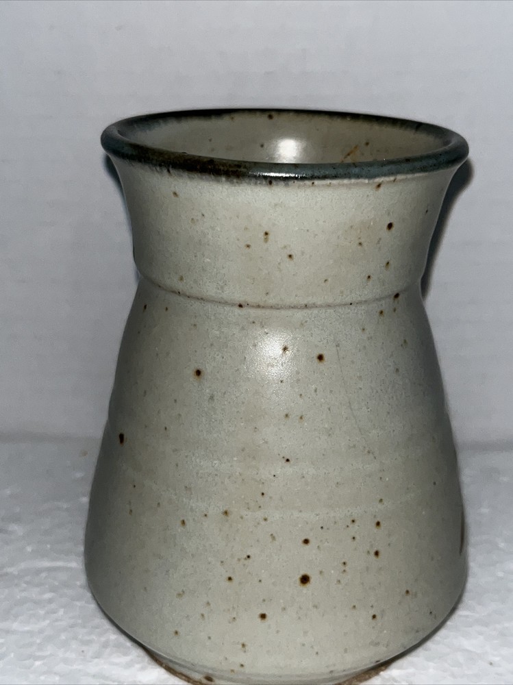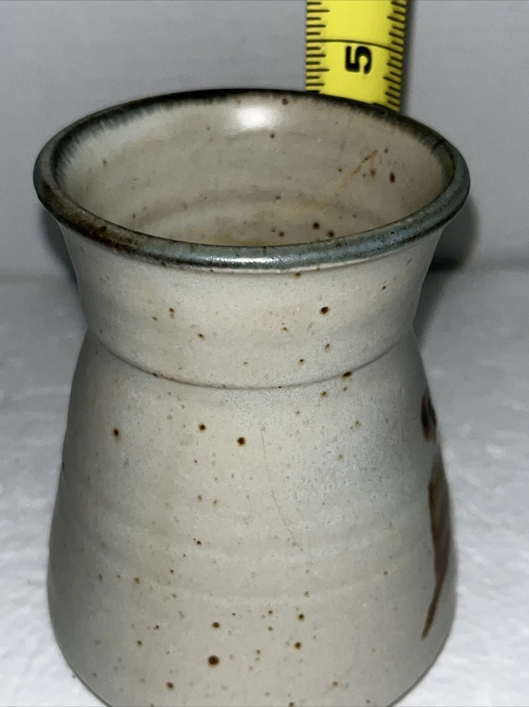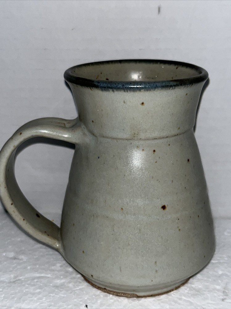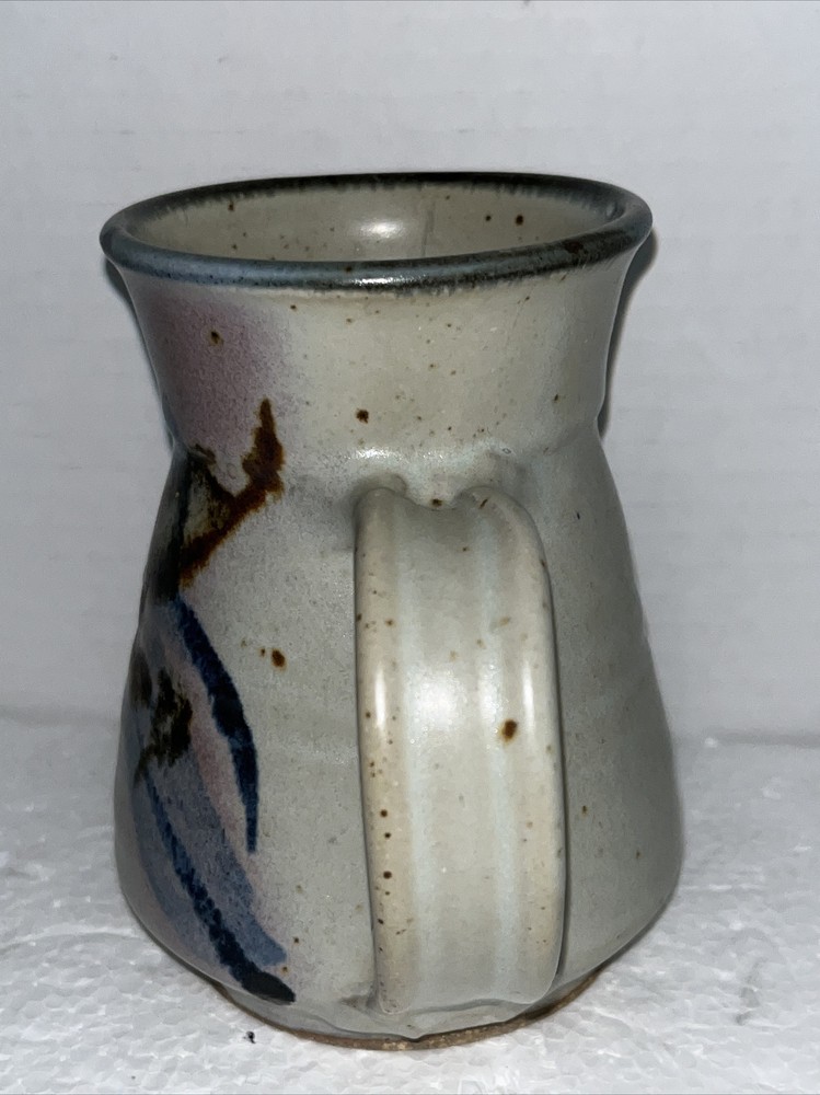 Studio Art Pottery Blue Grey Brown Mug Vase Shaped Glaze Signed R L 14 ounces....