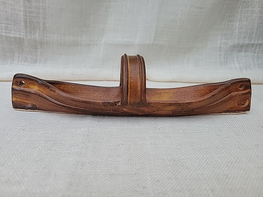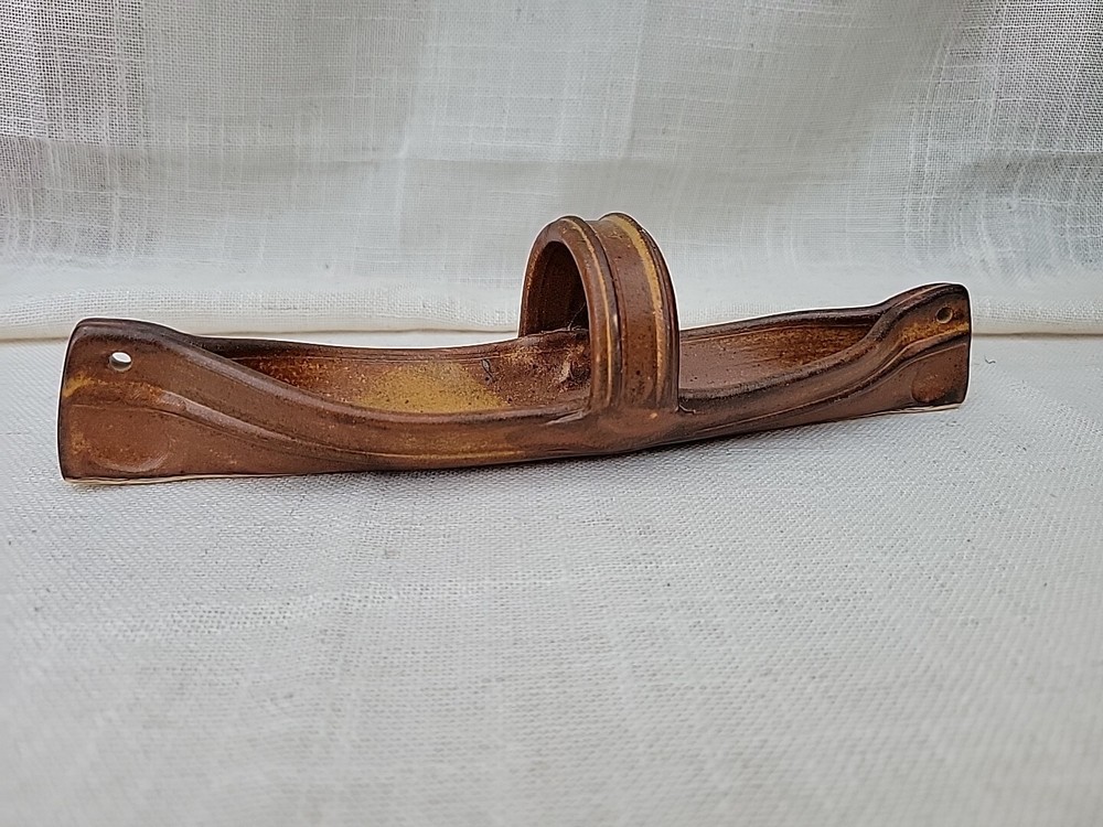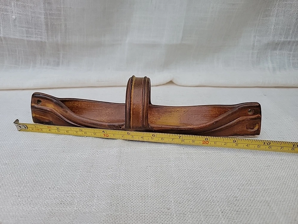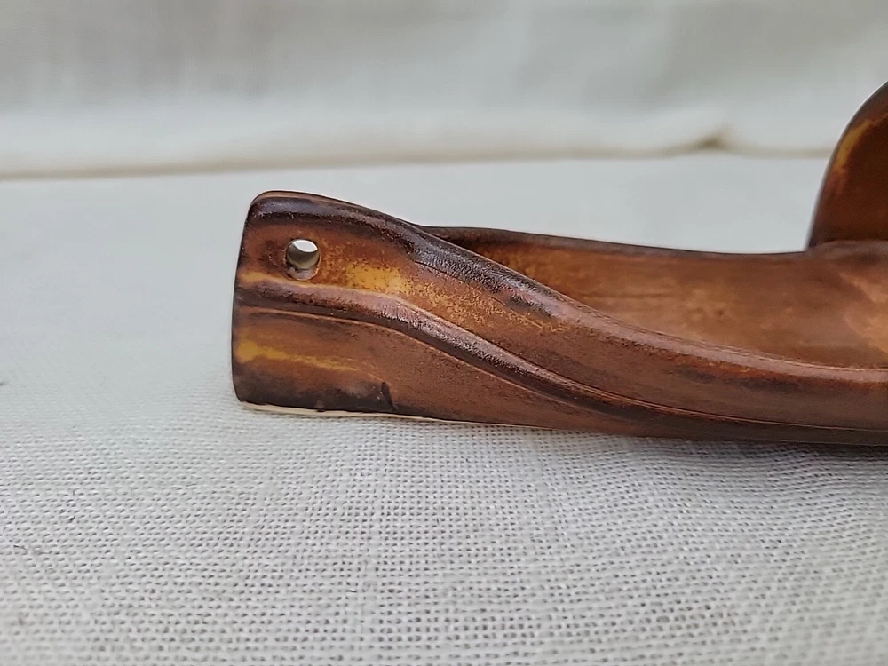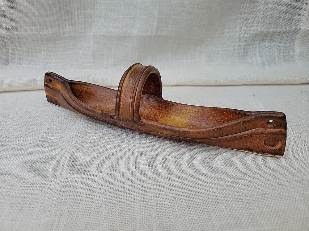 Very unique art pottery piece. Shaped like a canoe with a handle. Would be a cute trinket dish. Great condition, no chips or cracks. Signed and stamped. Questions welcome. Purchased items are packaged with care.