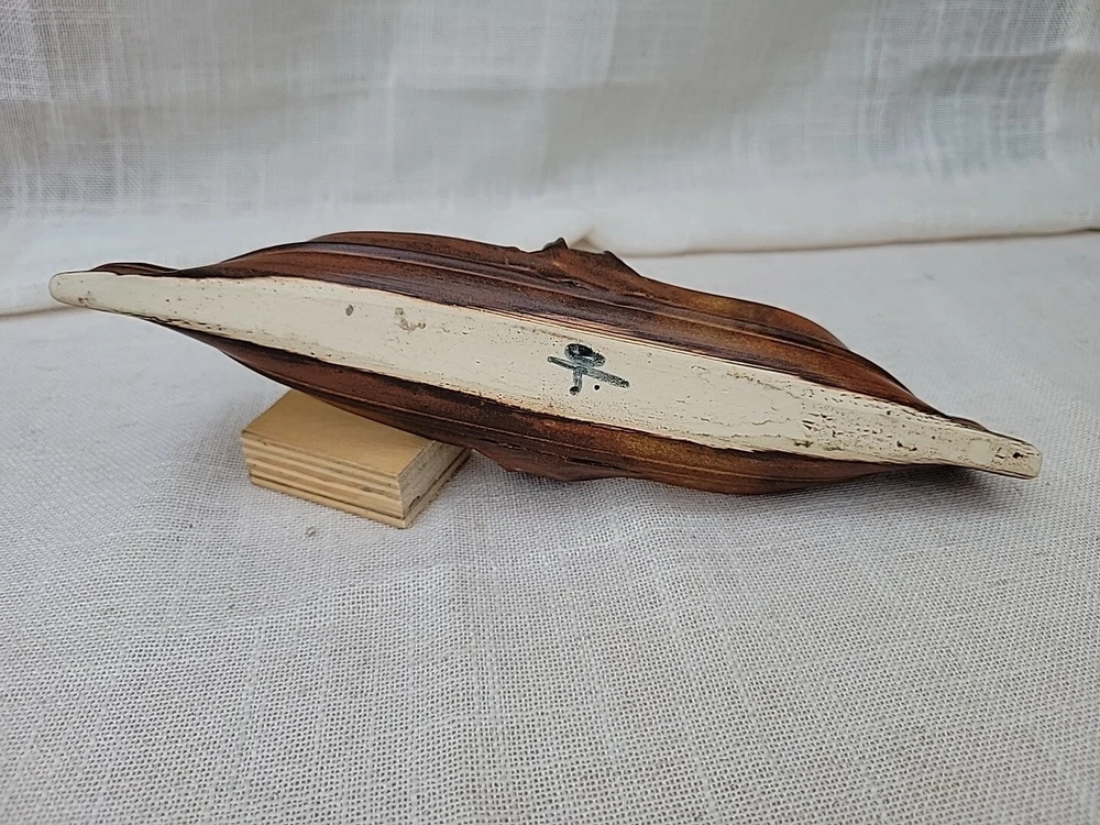Very unique art pottery piece. Shaped like a canoe with a handle. Would be a cute trinket dish. Great condition, no chips or cracks. Signed and stamped. Questions welcome. Purchased items are packaged...