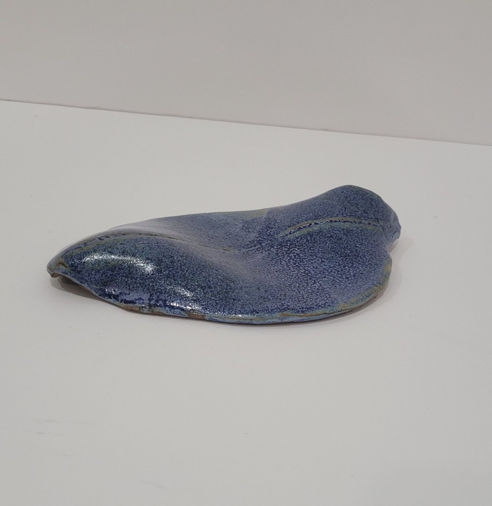 Studio Art Pottery Clay Leaf, Decor, Trinket, Blue Glaze, marked on back. It measures approximately 7" X 3.75"....