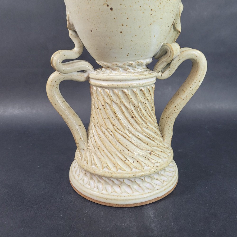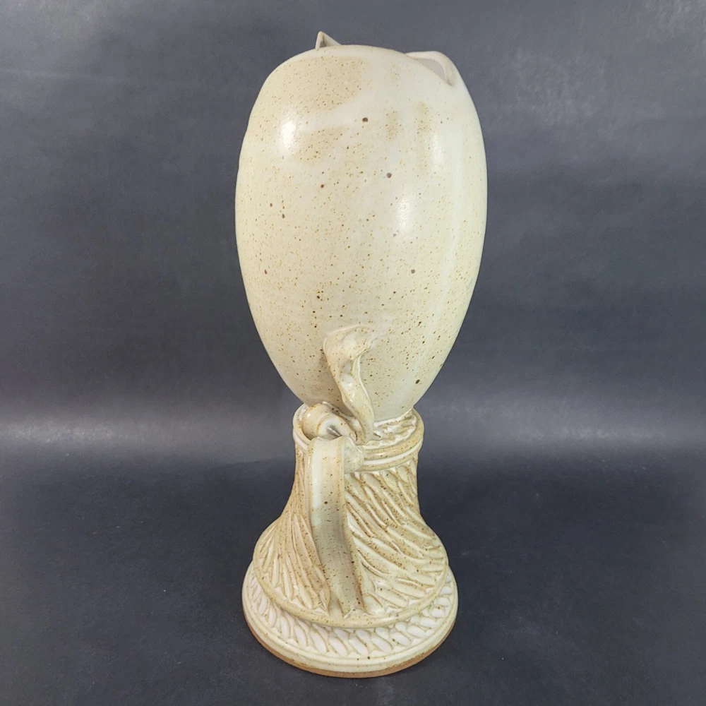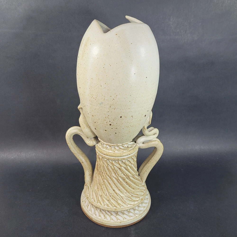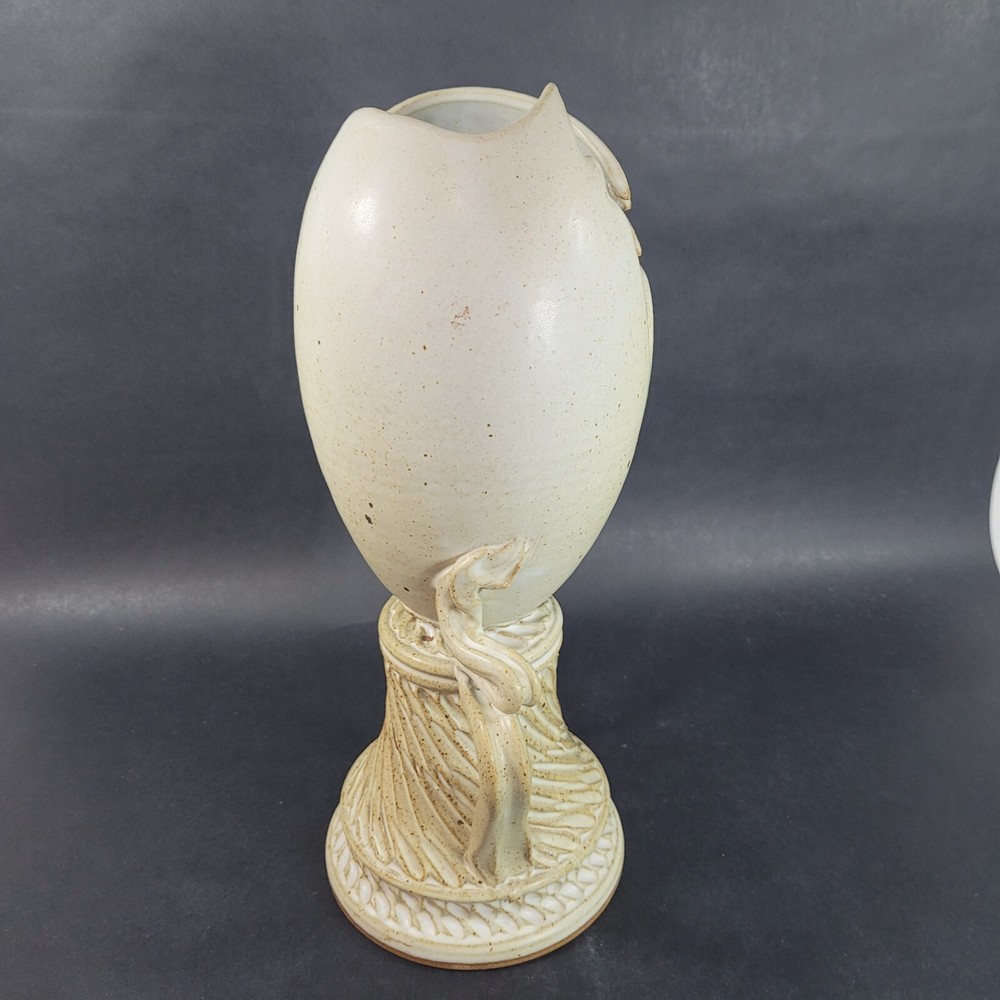 Art Pottery Egg Vase Plater Hand Made Stoneware 13 inches Measures approximately 13" x 6.5" x 5" Good preowned condition, free of chips & cracks All items are sold as described and unless otherwise stated, are antique, vintage, and preowned and not in new condition. They may need minor cleaning or polishing by the buyer. Let us know if you have any questions.