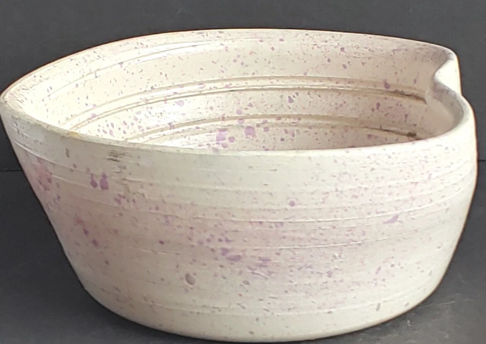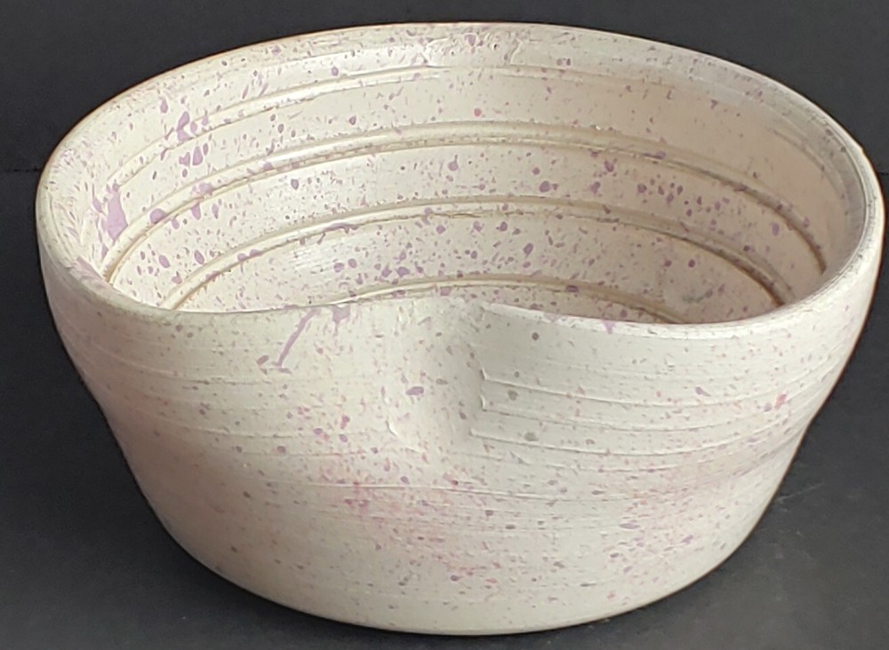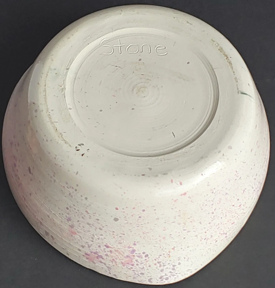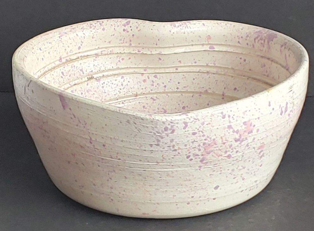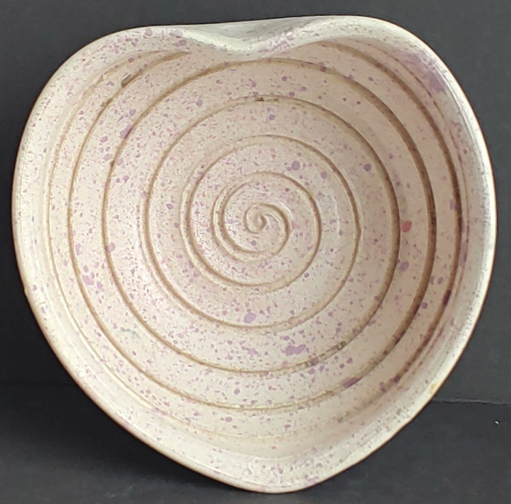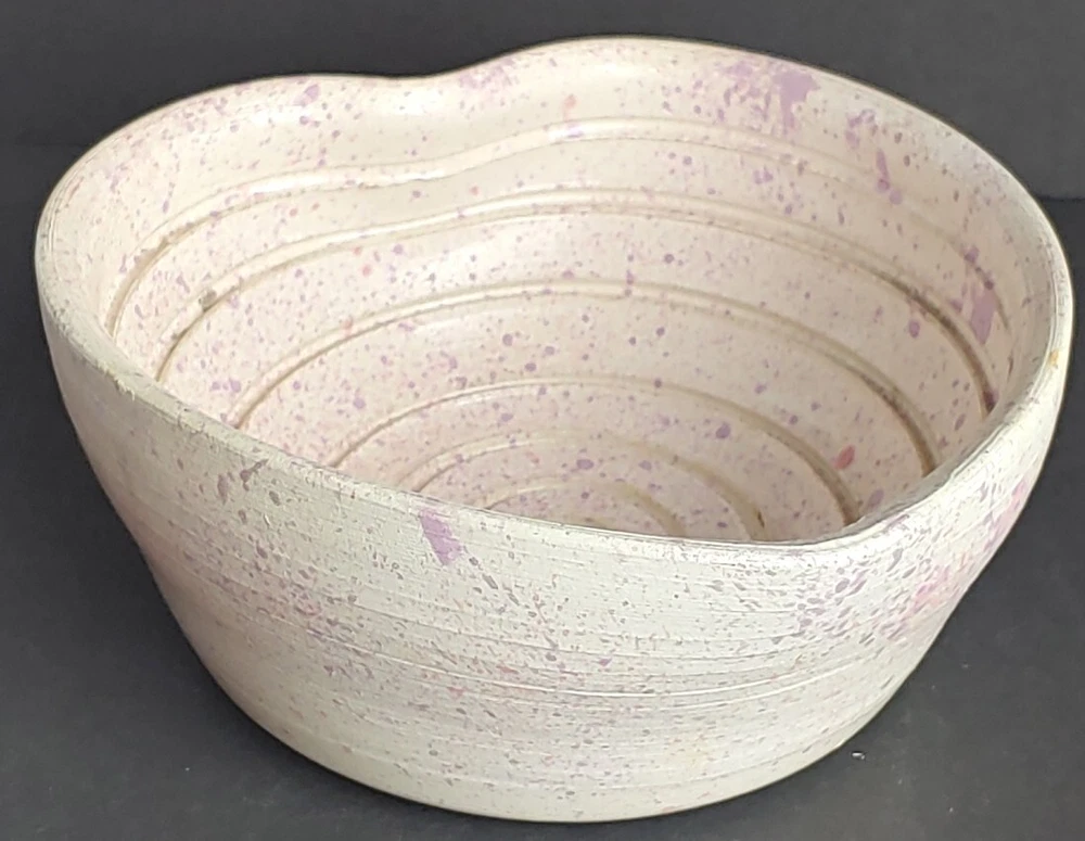 Studio Art Pottery Decorative Heart Shaped Bowl White & Purple 3 Tall × 6 Wide. Condition is used. Shipped with USPS Priority Mail. Pre-owned handcrafted decorative heart-shaped Pottery Bowl in nice condition. Free of chips, cracks and breaks. Artist signed on bottom. ( STONE) Heavy weight of almost 2 lb. T- 2829
