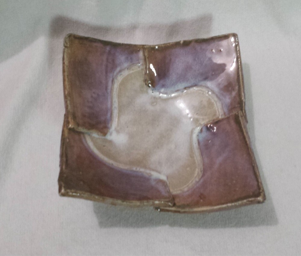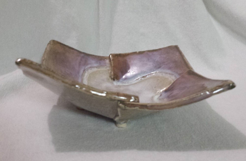 This deal is for a Studio Art Pottery Dish Square Two-Tone Footed Hand Crafted Artisan Piece 7" No signature. Very nice. 7" x 7" x 2-1/4" high Fast shipping from Orlando....