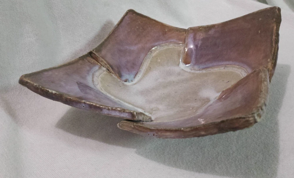 | Color | Dusty Mauve & Tan with Purple Opalescent Glaze |