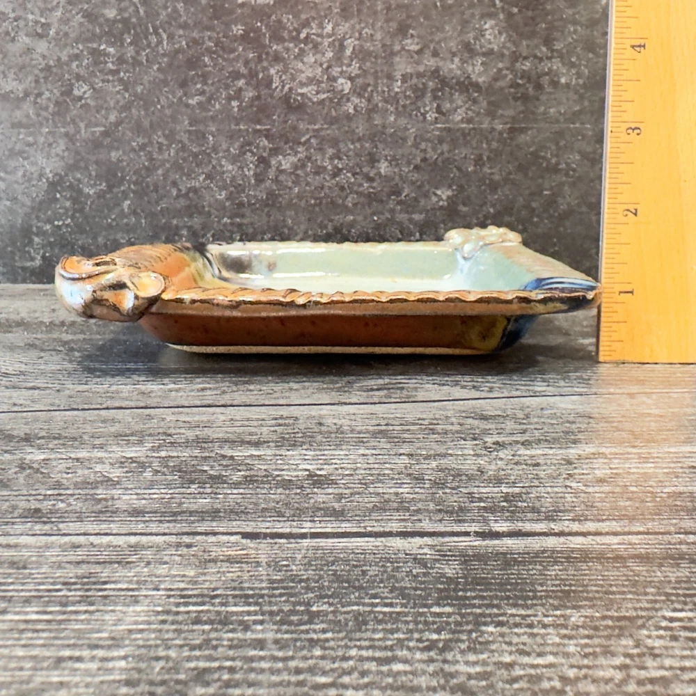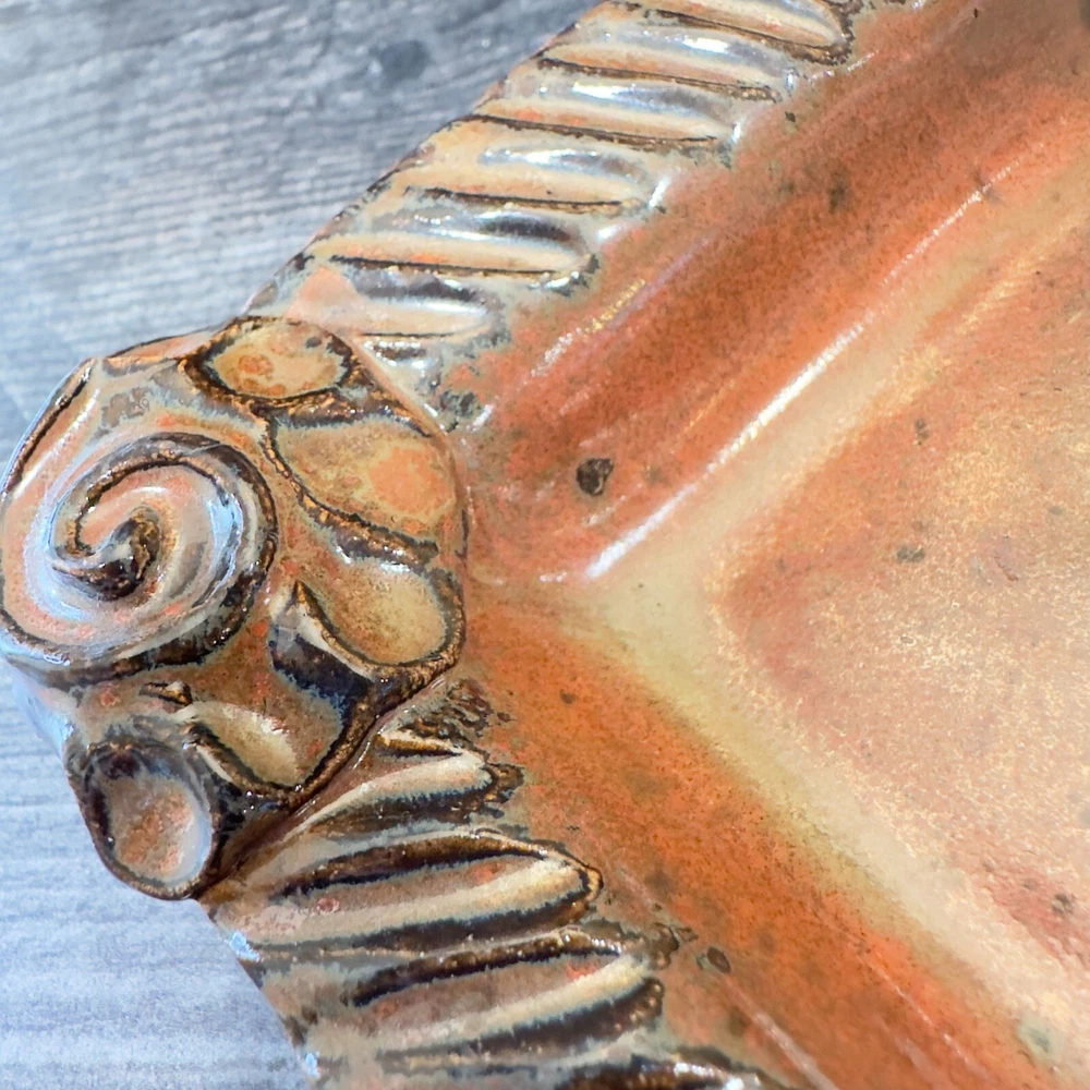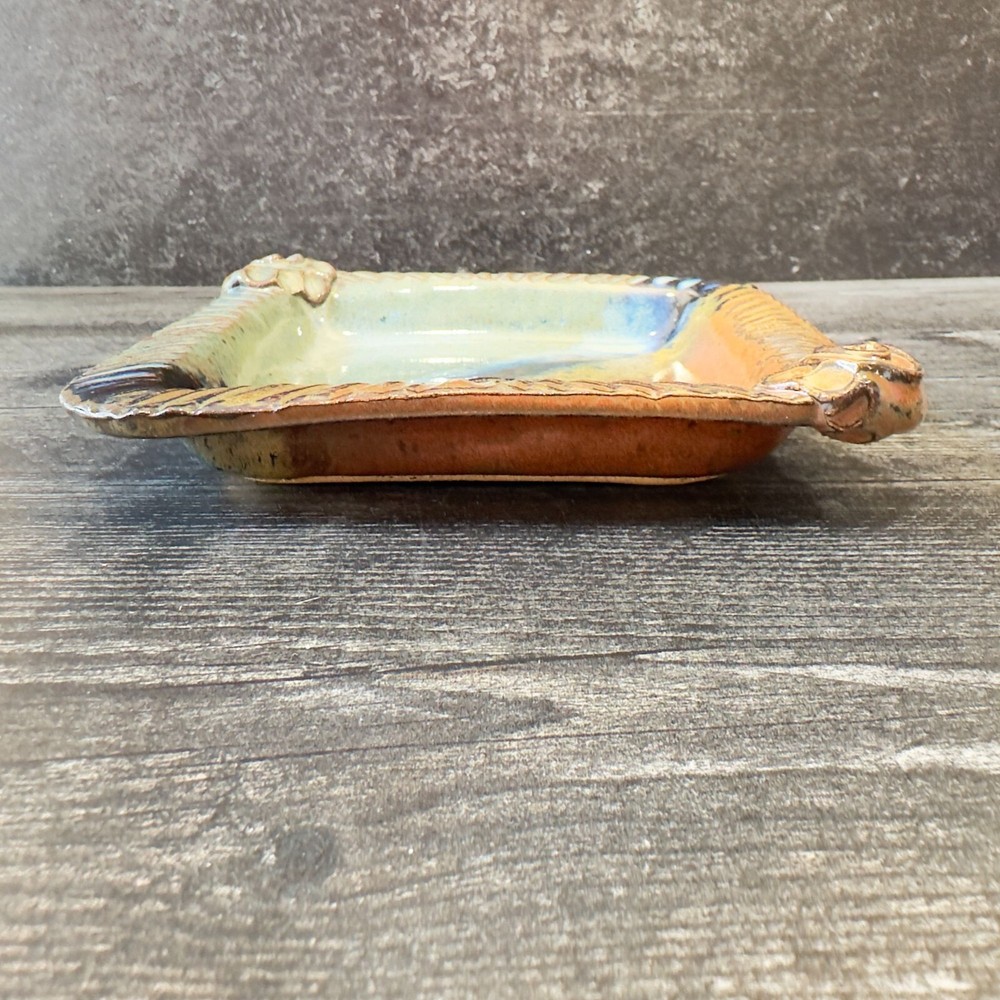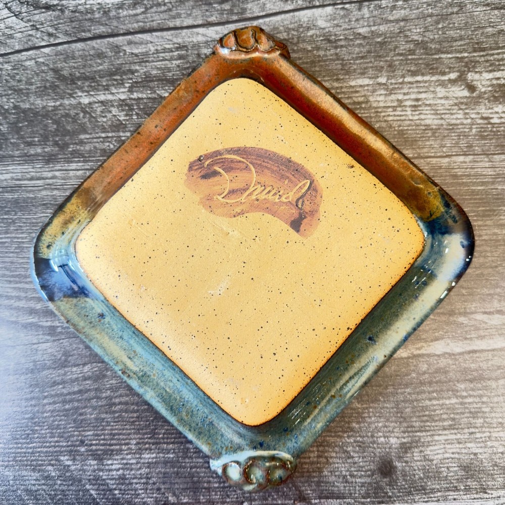 Handmade ceramic dish featuring a unique swirl pattern with earthy colors. Ideal for decor or serving small items. • Handcrafted ceramic • Unique swirl pattern • Earthy color palette • Square shape • Measurements - 6.75” square x 1.25” high Condition: Pre-Owned Good - one glaze spot Photos are a part of description and best indicate condition. Contact us with questions before purchase. Photo props not included - only items in title are being sold. #33642