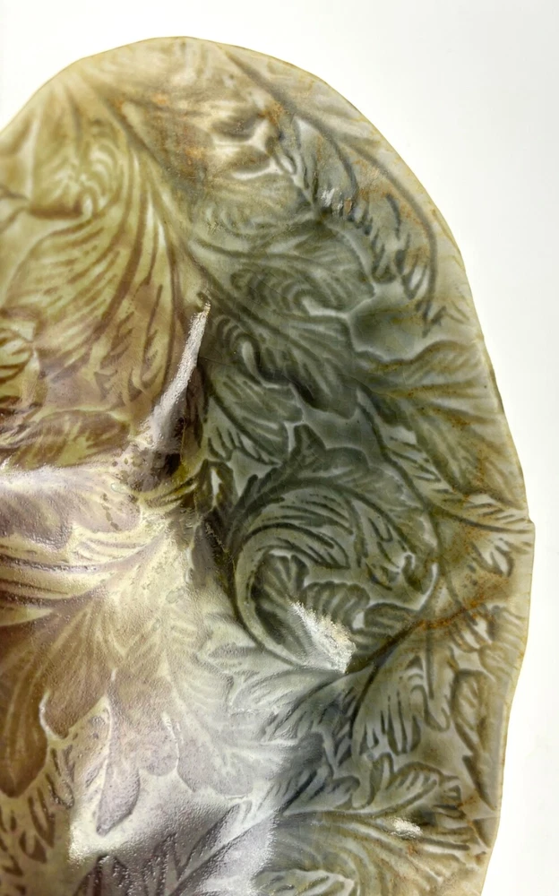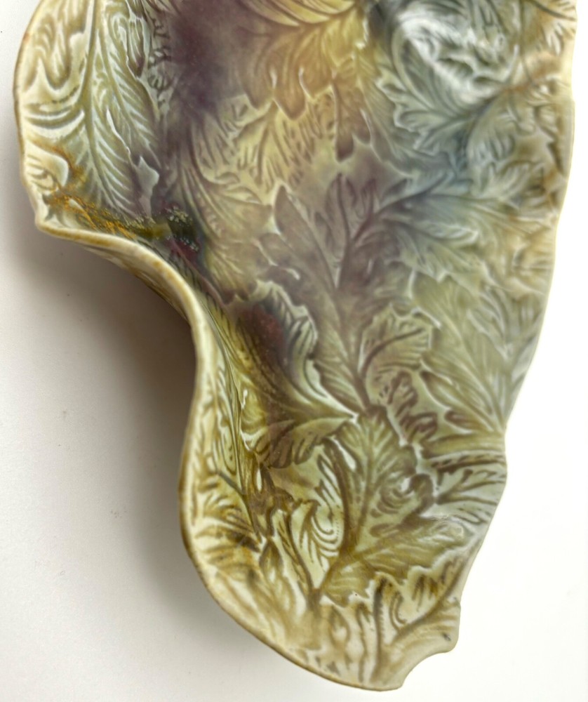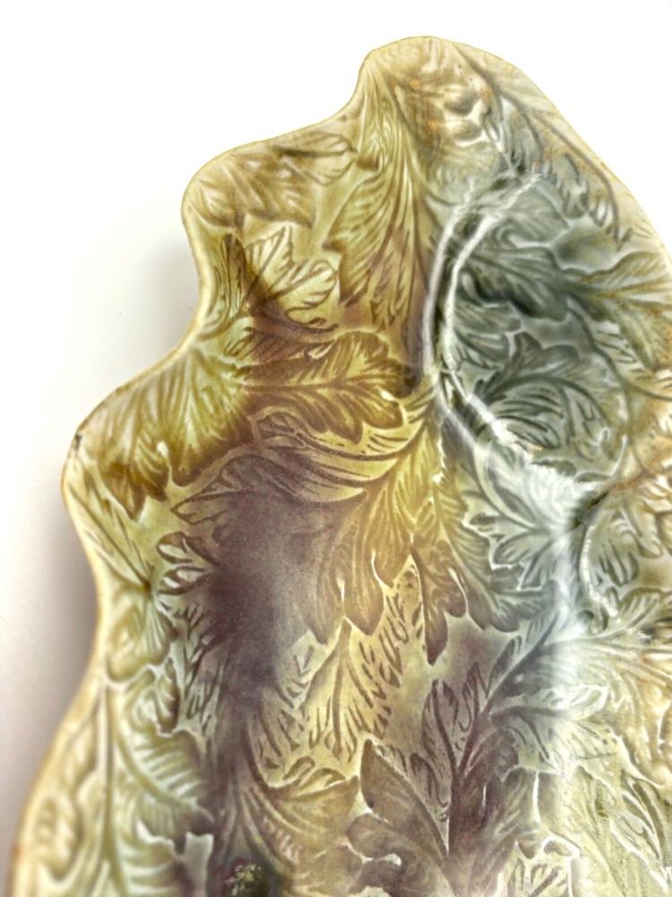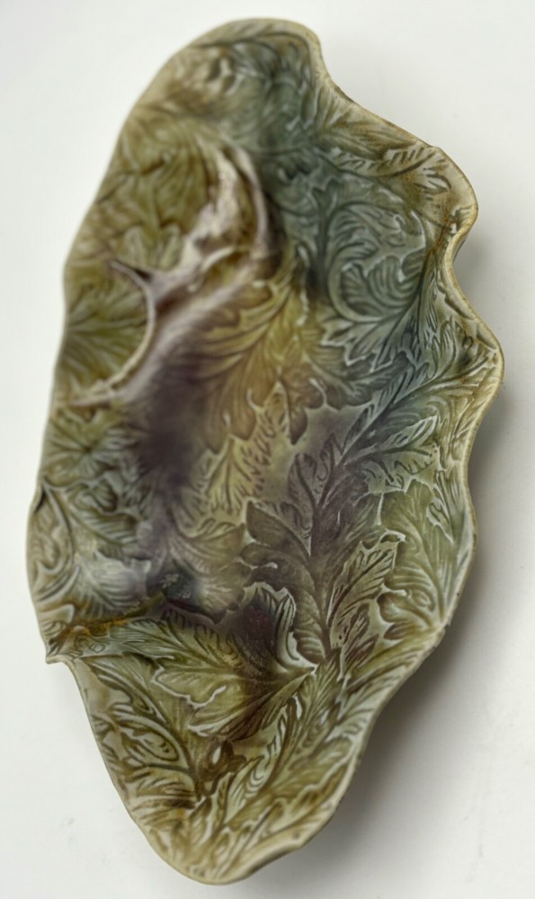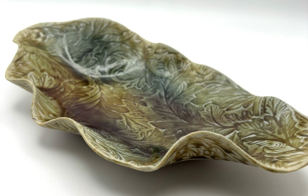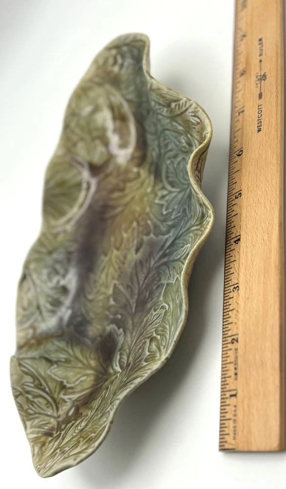 This beautiful leaf tray is a must-have for any collector of unique pottery. It is perfect for serving appetizers or as a decorative piece for your home. We can also see it used to hold keys inside the front door. Simply beautiful from every angle! Good condition, light wear. Please see all pictures for cosmetic details.