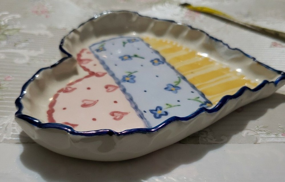Studio Art Pottery Handmade Heart Love Trinket Dish Spoon Rest Signed. In Good Condition Very Pretty. great trinket Dish...