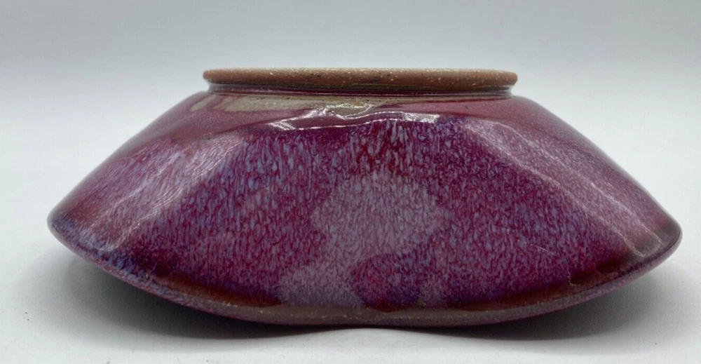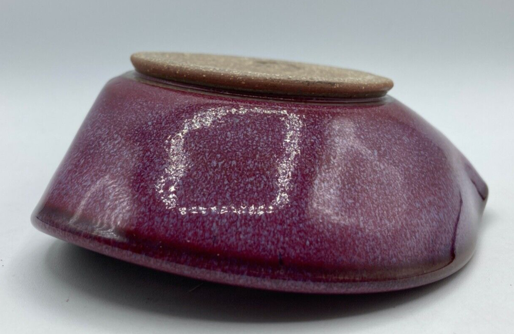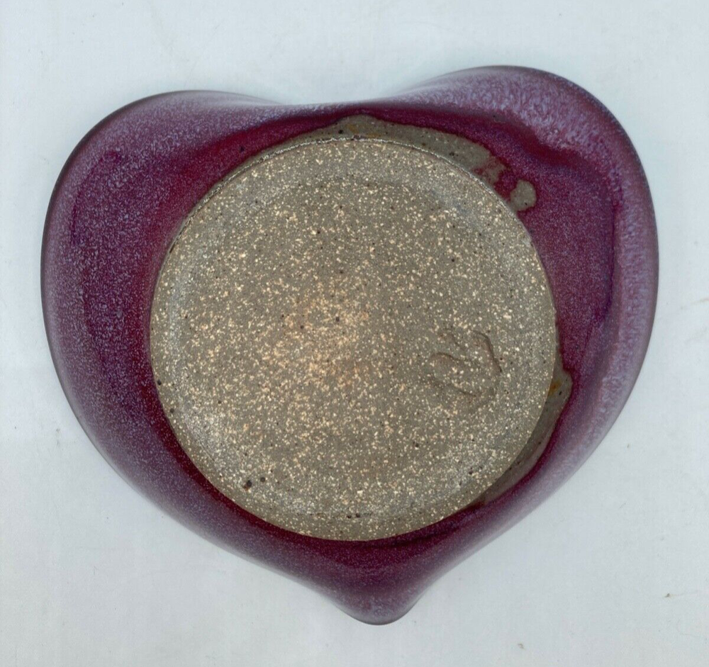 Studio Art Pottery Heart Shaped Bowl Trinket Dish. Beautiful Magenta Purple Lavendar Drip Glaze. No chips or cracks. Artist mark on the bottom. Measures 1 3/4" tall x 5" x 5 1/2" Please ask if you hav...