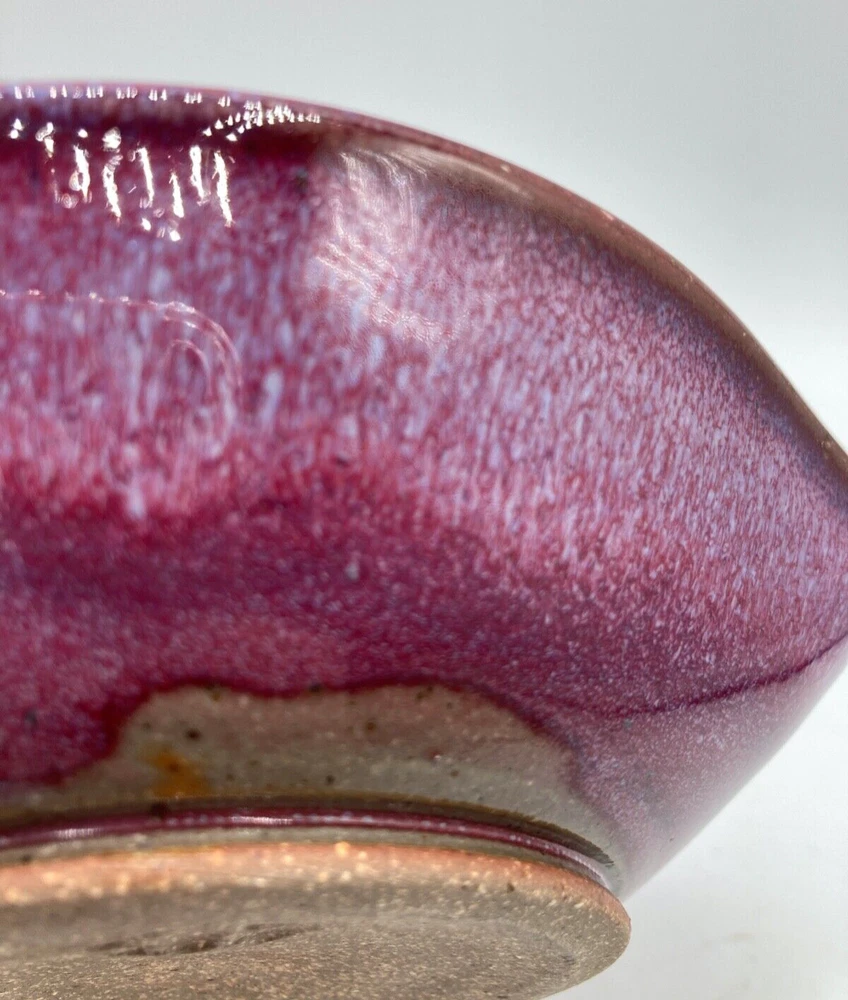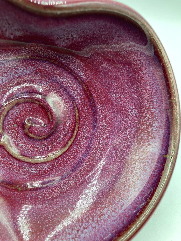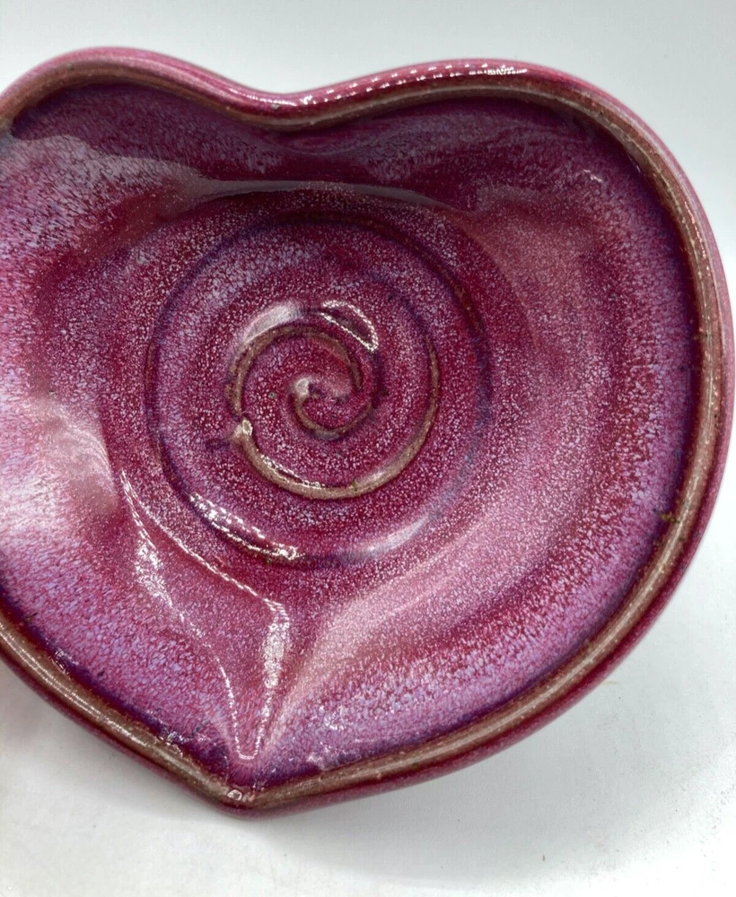 This adorable heart-shaped bowl is perfect for holding trinkets or jewelry! The vibrant magenta drip glaze gives it a unique, artsy look, and the quality is fantastic—no chips or cracks. It's signed by the artist, adding a special touch. Great size for small treasures!