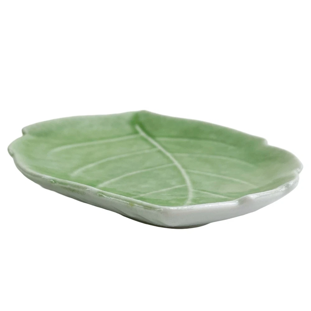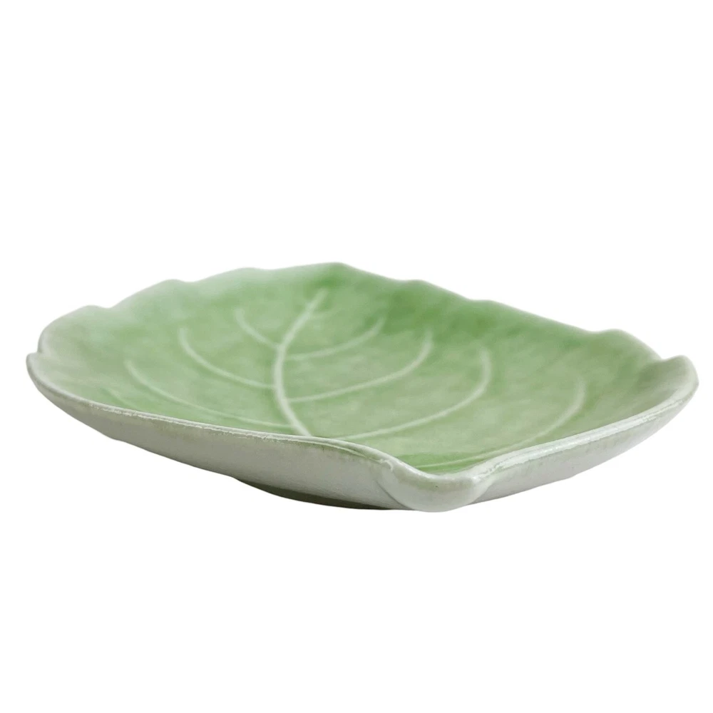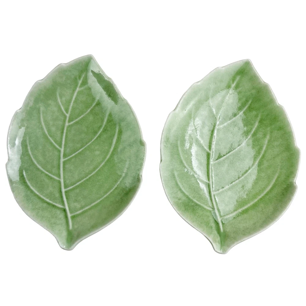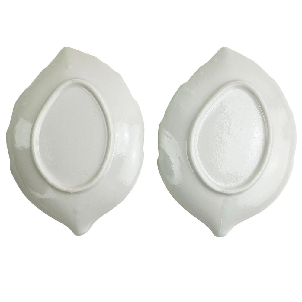 Studio Art Pottery Leaf Shaped Plates Set of 2 Dishes Catch-All Trinket Soap Dish Green 9" Condition: This is a pair of pretty leaf-shaped dishes. They are made of ceramic or perhaps pottery with a beautiful green glaze. they have a glossy finish and raised texture along the spines of the leaves. They are slightly curved with a raised lip and could work as large soap dishes, catch-all trays, decorative displays, or a gorgeous accent to your table setting. They measure 6.75" wide x 9.5" long x 1" tall. Each plate weighs 1 lb 3 oz. The combined weight is 2 lb 5 oz. They are in excellent condition with no chips, cracks, or crazing. Please see the photos for specifics on the condition of these lovely leaf dishes. Measurements: 6.75" wide x 9.5" long x 1" tall Weighs 1 lb 3 oz each Set of two (2) plates Combined weight 2 lb 5 oz ***All measurements are approximate*** International Buyers - Please Note: Import duties, taxes, and charges are not included in the item price or shipping cost. These charges are the buyer’s responsibility. Please check with your country's customs office to determine these additional costs before placing a bid or buying.