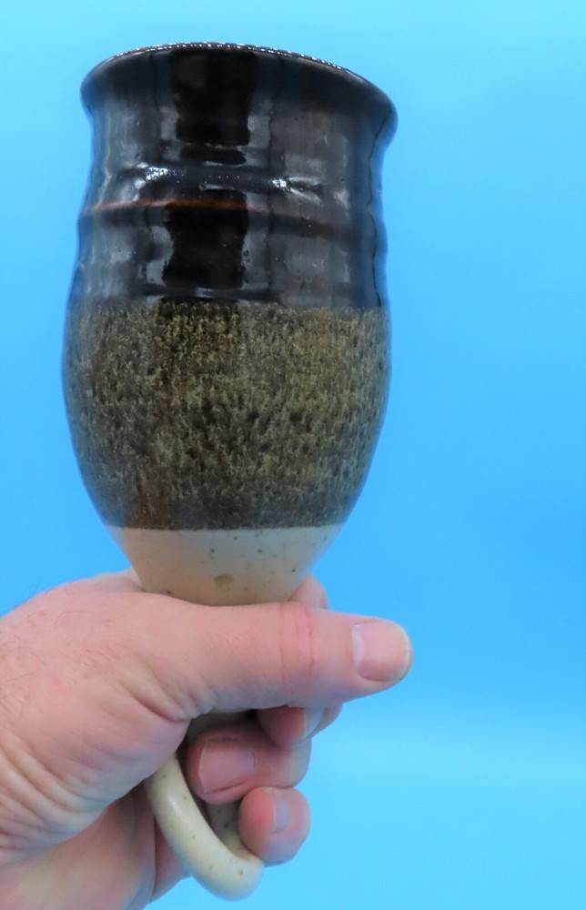 Studio Art Pottery Mug Hanging Goblet Belt-Cup Bell Shape Curved Looped Handle Beautiful and Unique Goblet / Mug with a belt loop handle Hand made of Pottery Clay and finished with multi color glaze Measures 8.5 inches tall x 3.25 inches diameter at rim Weight is 14 ounces without packaging Mid Century Modern Functional Decor Piece Excellent Condition - No Chips, Cracks or Repairs No Makers Marks Please take a close look at all of the included images in this listing as they are also part of the description. We do our best to describe all items as accurately as possible to ensure customer satisfaction. If you have any questions, feel free to reach out and we will respond as quickly as we can. We also have other unique items listed which can be browsed by clicking on our seller link at the top of the page. If you purchase more than one of our items, we will gladly combine shipping when possible. Please request an adjusted invoice before making payment when purchasing multiple items to ensure correct charges. Thank you for stopping by and have a Wonderful Day.