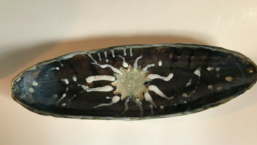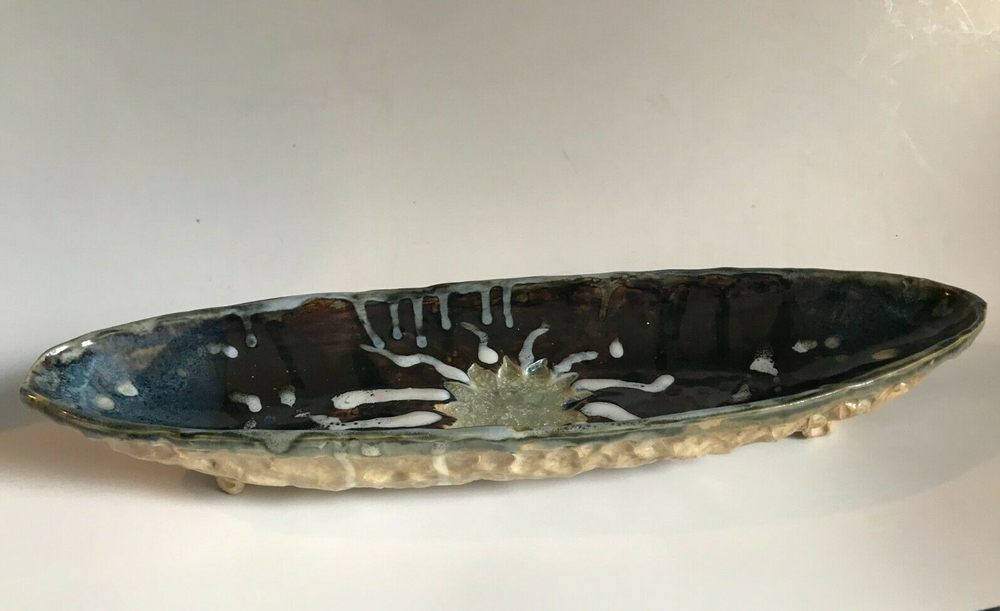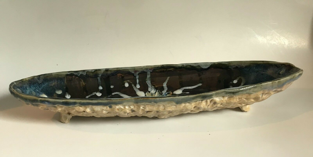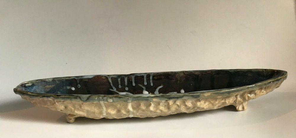 Previously Enjoyed ~ Gently Displayed ~ STUDIO ART POTTERY ~ Oval Boat Shaped Footed BOWL / DISH ~ Signed COREY ~ Approximately 17.5" x 5.5" x 2" ~ See Condition Description & Photos ~ CHECK OUT MY OTHER STUDIO ART POTTERY ITEMS ~ From a Smoke Free Home! I strive to give an accurate description of my items. Pictures are an accurate depiction of the item. Please REVIEW the description and pictures carefully. Please ask any questions before you purchase the item. Be sure to Add me to your FAVORITES List! CHECK OUT MY STORE ~ scrappinpsycho {12/1} 1.<**1.3.<**1.