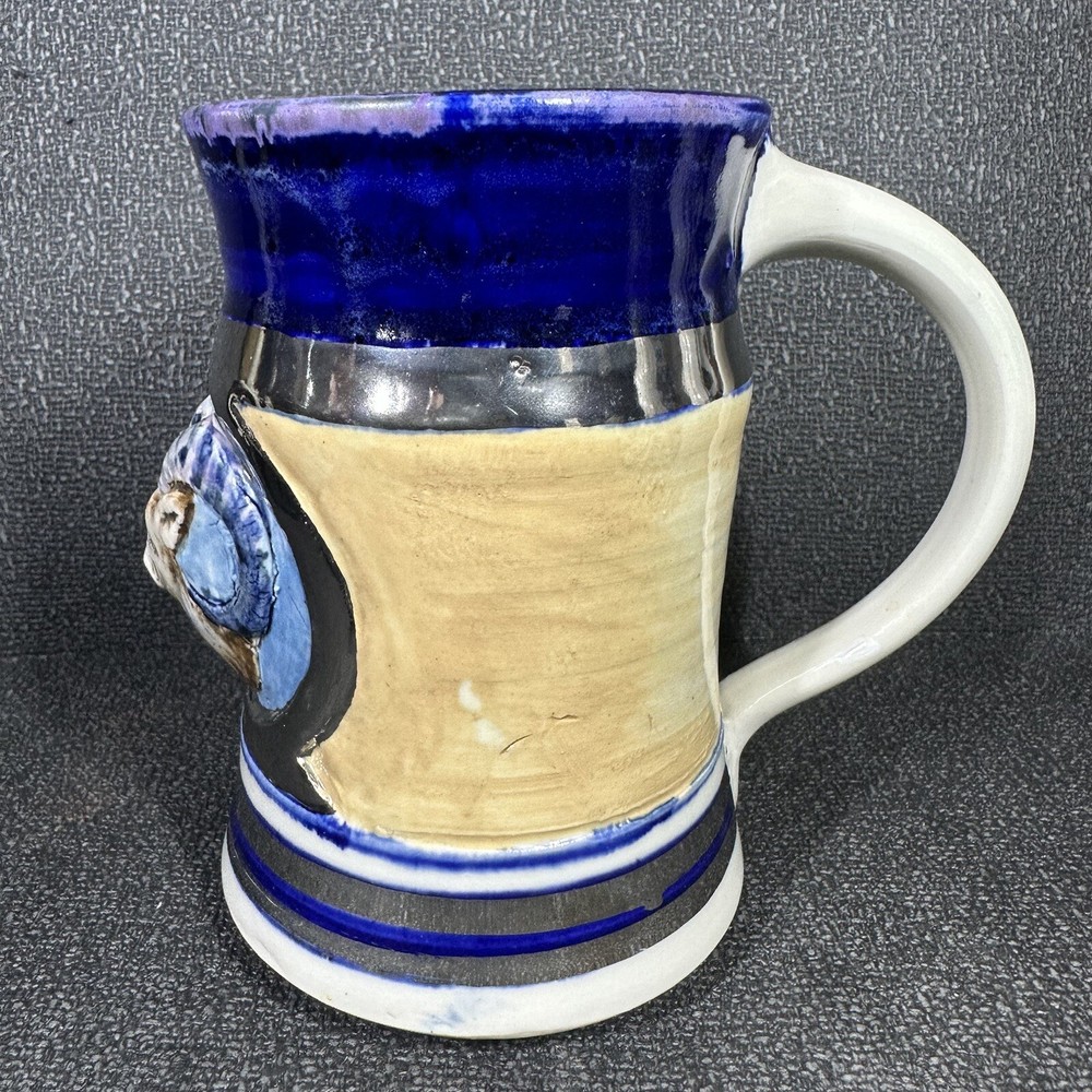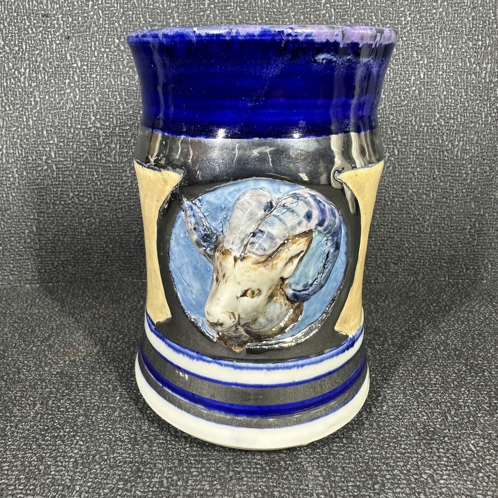 Studio Art Pottery Ram Stein Tankard Mug Vintage 1974 Signed Silver Blue. Great condition - see photos. From a smoke free home....