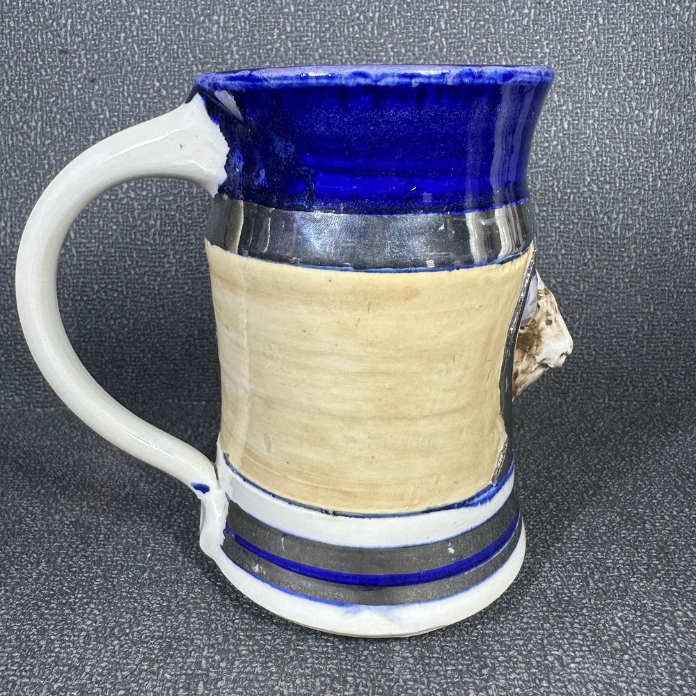 Studio Art Pottery Ram Stein Tankard Mug Vintage 1974 Signed Silver Blue. Great condition - see photos. From a smoke free home.