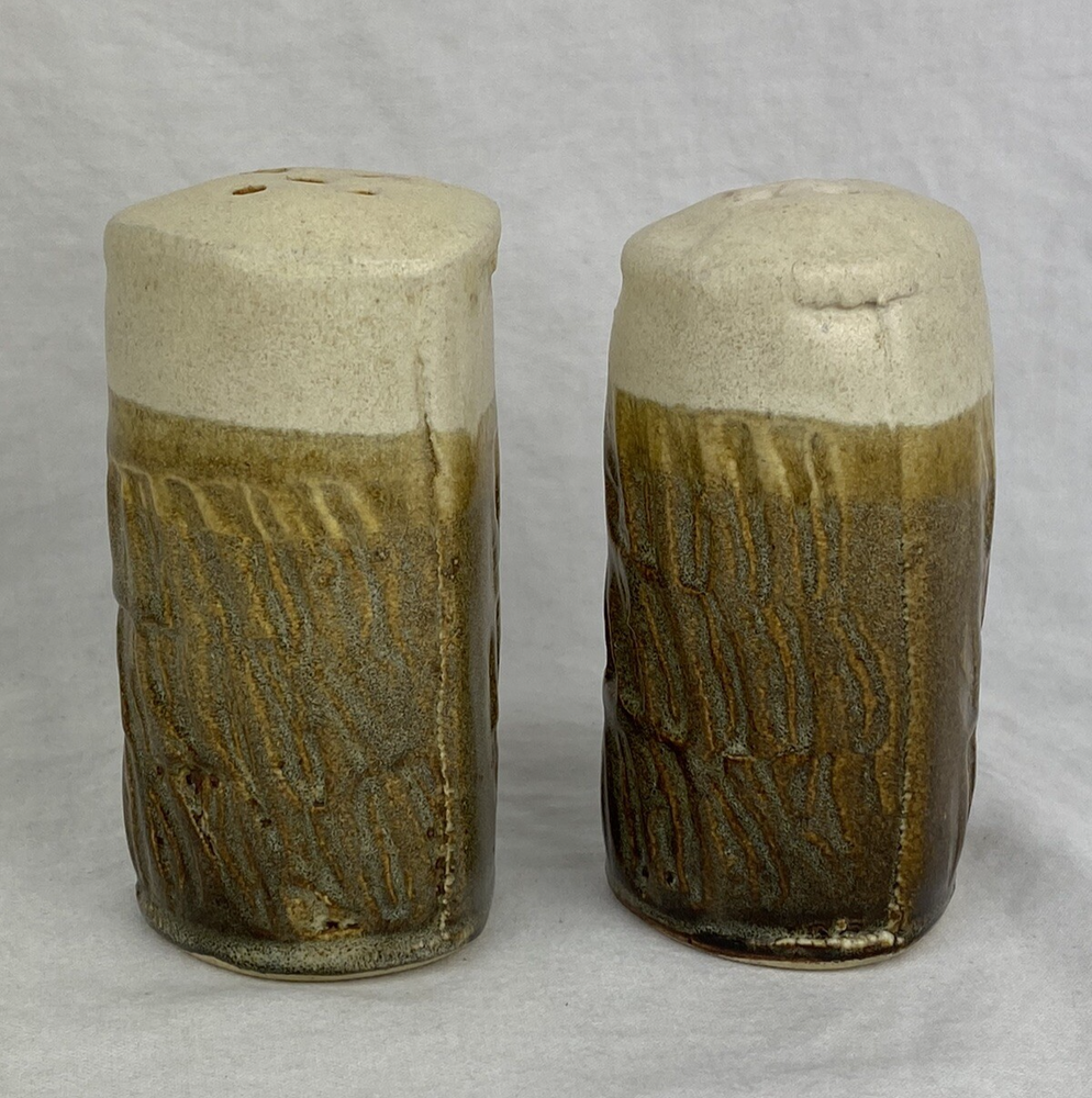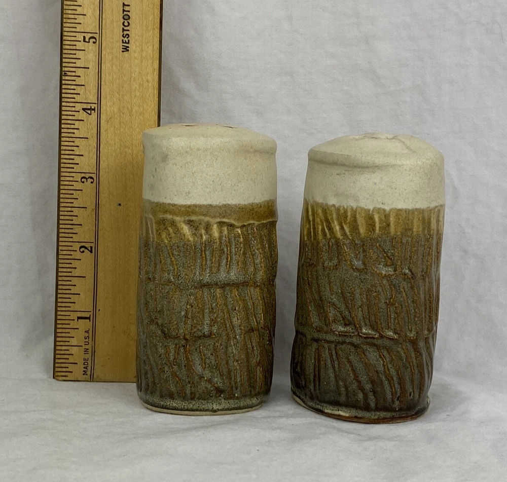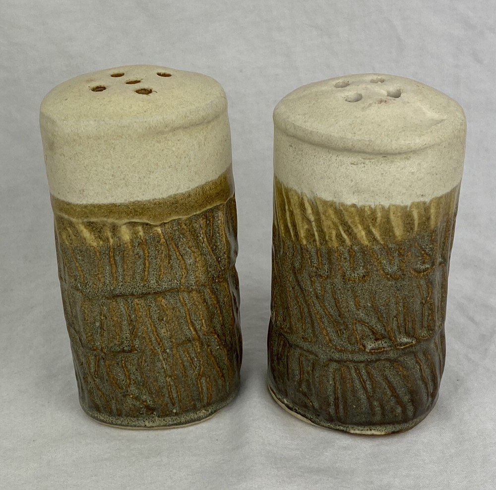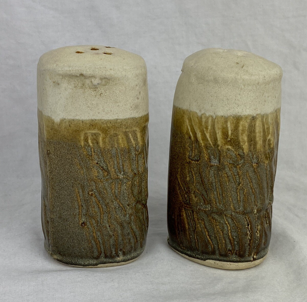 Studio Art Pottery Salt Pepper Shaker Brown Beige Glaze Stoneware MCM Signed No chips or cracks. See photos as they are part of the description. Thank you for visiting!