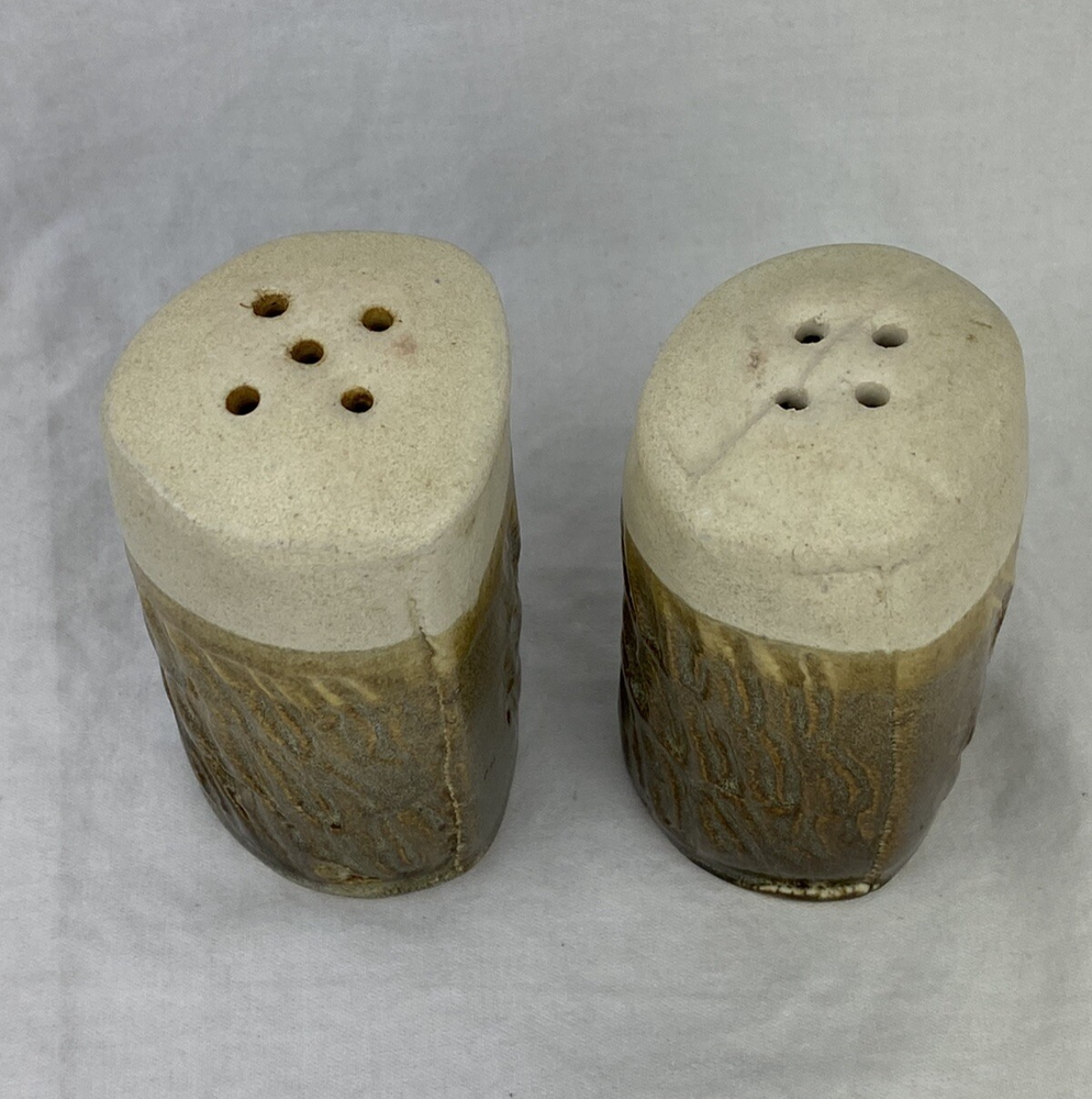 Studio Art Pottery Salt Pepper Shaker Brown Beige Glaze Stoneware MCM Signed No chips or cracks. See photos as they are part of the description. Thank you for visiting!...