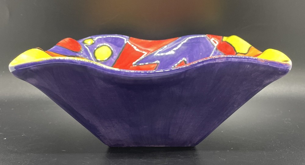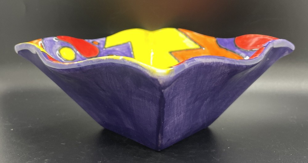 Studio Art Pottery Square Bowl Tray Hand Painted Signed Modern Catchall Colors. Please review photos for approximate measurements. Great condition no chips, cracks or other issues to report. Minor signs of wear. Please zoom all pictures as they are part of the description. I try my best to photograph every angle, items are sold "as is." MAR25-179