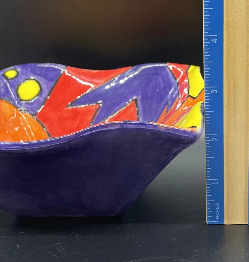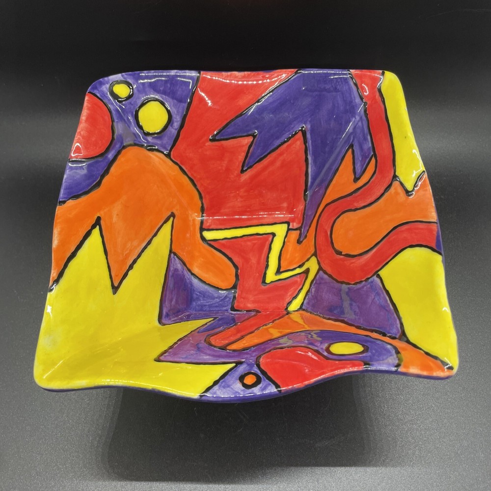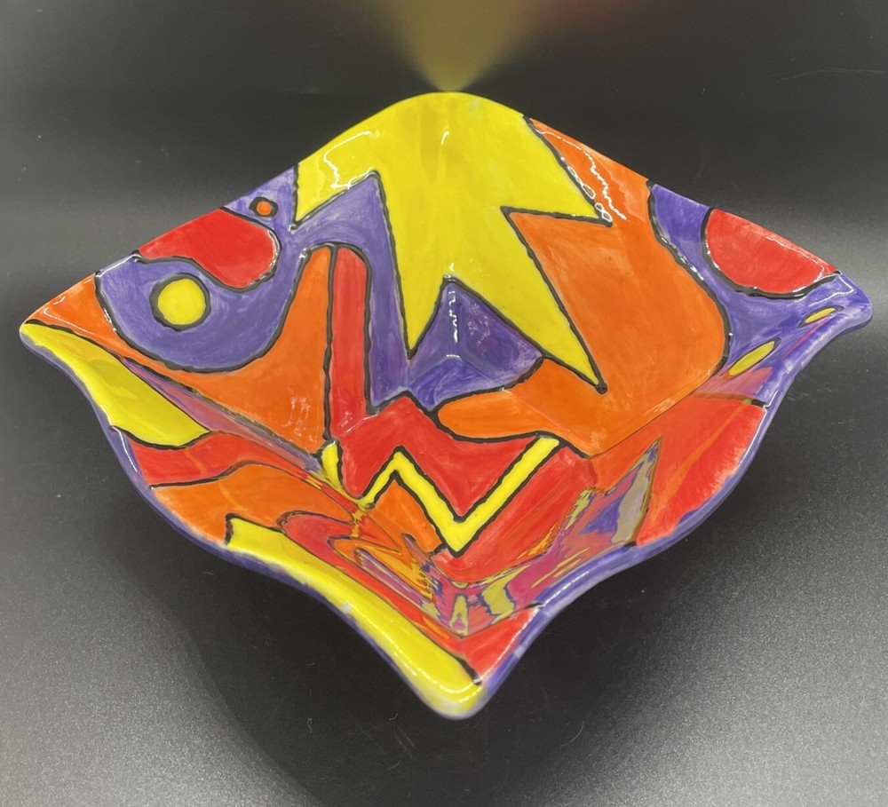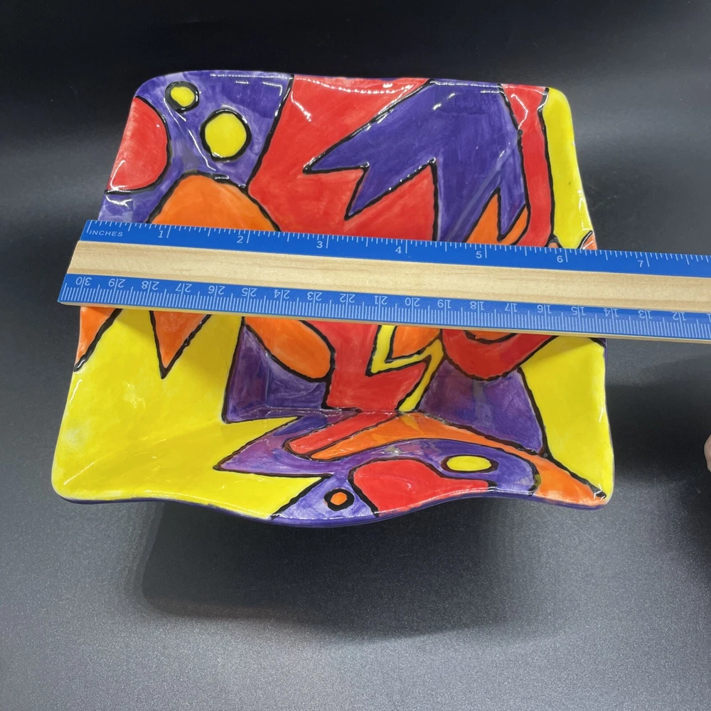 This stunning hand-painted square bowl tray is a true work of art! The vibrant colors and modern design make it a perfect catchall for keys, jewelry, or decor. No chips or cracks—just minor wear that adds character. The artist’s signature gives it a special touch. Photos show every detail beautifully. A unique, high-quality piece that elevates any space!