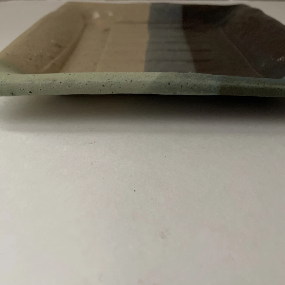 This Studio Art Pottery Square Dish is a unique and beautiful piece that would make a great addition to any collection. The dish features a green, black, blue, and beige color scheme that is sure to complement any decor. Made from high-quality pottery, this trinket dish is both durable and stylish. With its square shape and art pottery production style, this dish is perfect for storing small items such as jewelry or small trinkets. The pottery production technique used to create this piece is top-notch, resulting in a product that is sure to impress. Don't miss out on the opportunity to own this one-of-a-kind Studio Art Pottery Square Dish.