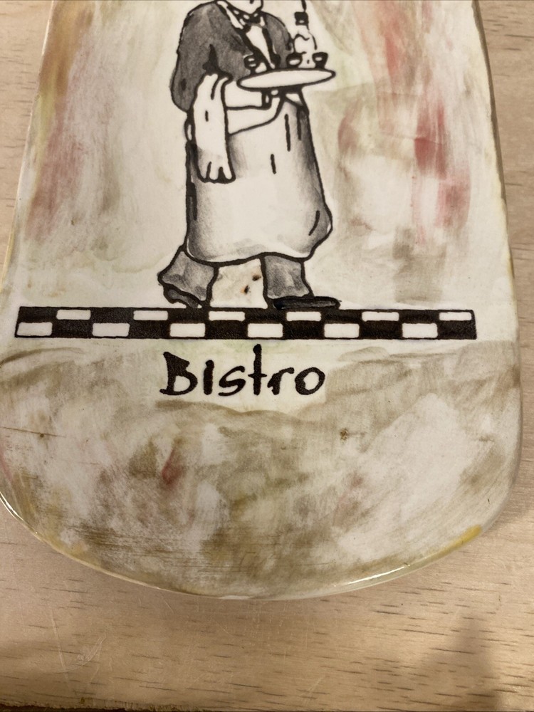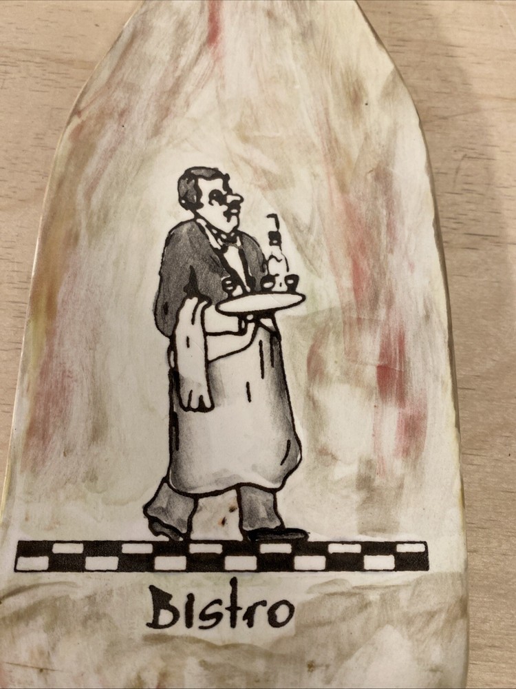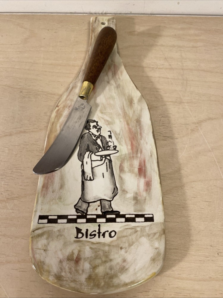 This Studio Art Wine Bottle Shaped Cheese Board is a unique and decorative piece for any kitchen or dining area. The ceramic board is shaped like a wine bottle with a multicolor vintage design, it comes w/a cheese knife. measuring 12 inches in height and length. It features a 4-inch diameter across the middle and a 4.25-inch width, making it a medium-sized cutting board. The board is easy to clean and can also be used as a wall hanging to add a touch of Italian bistro charm to your space.