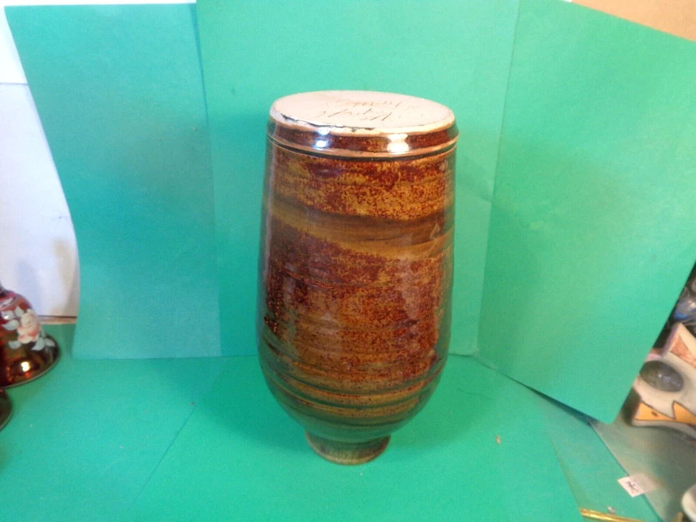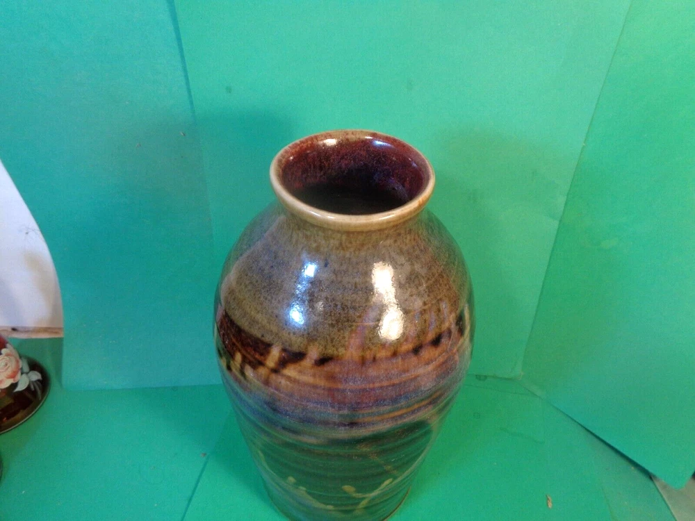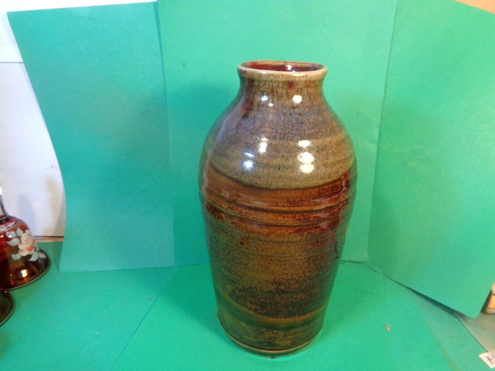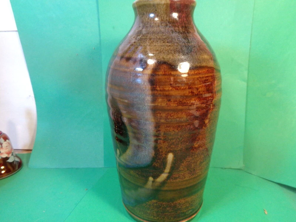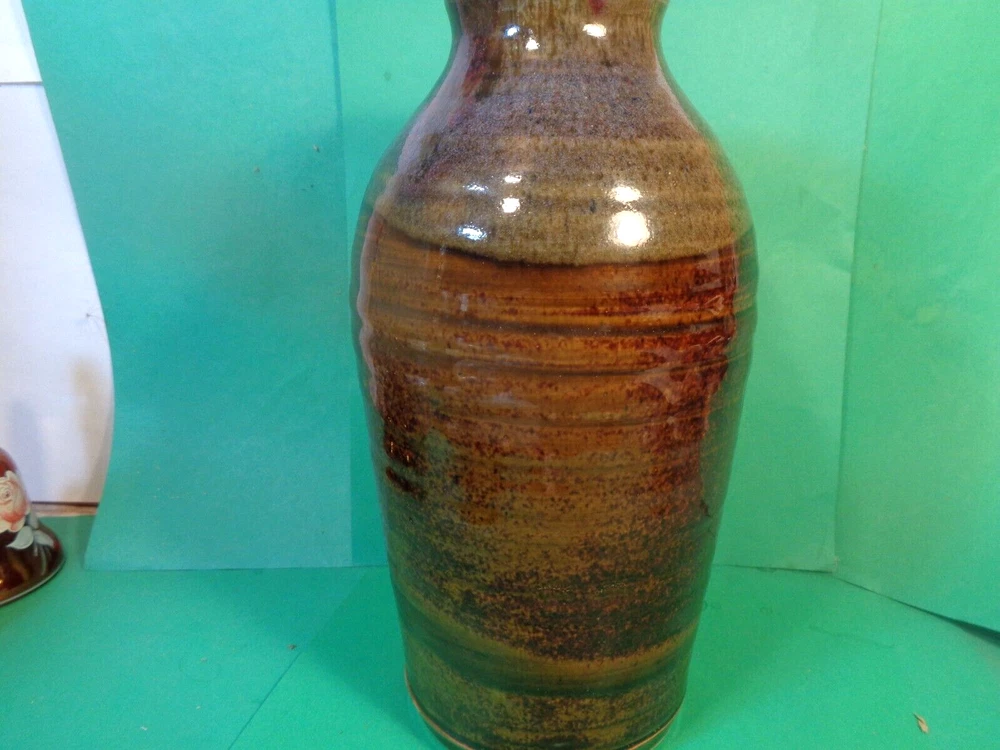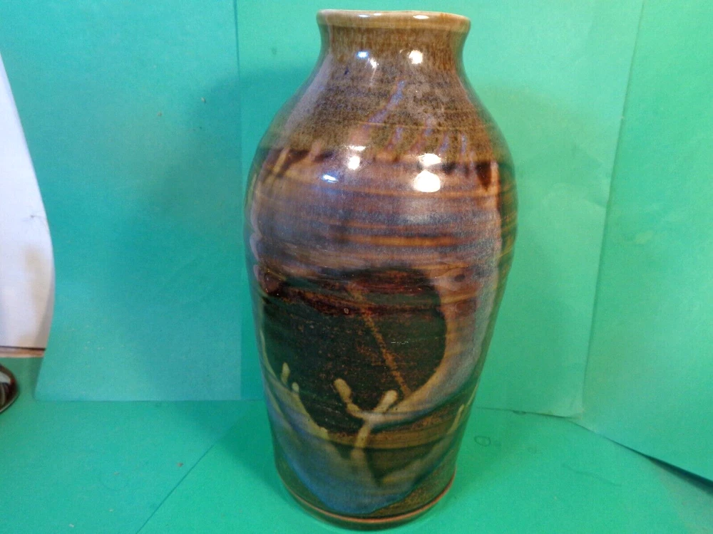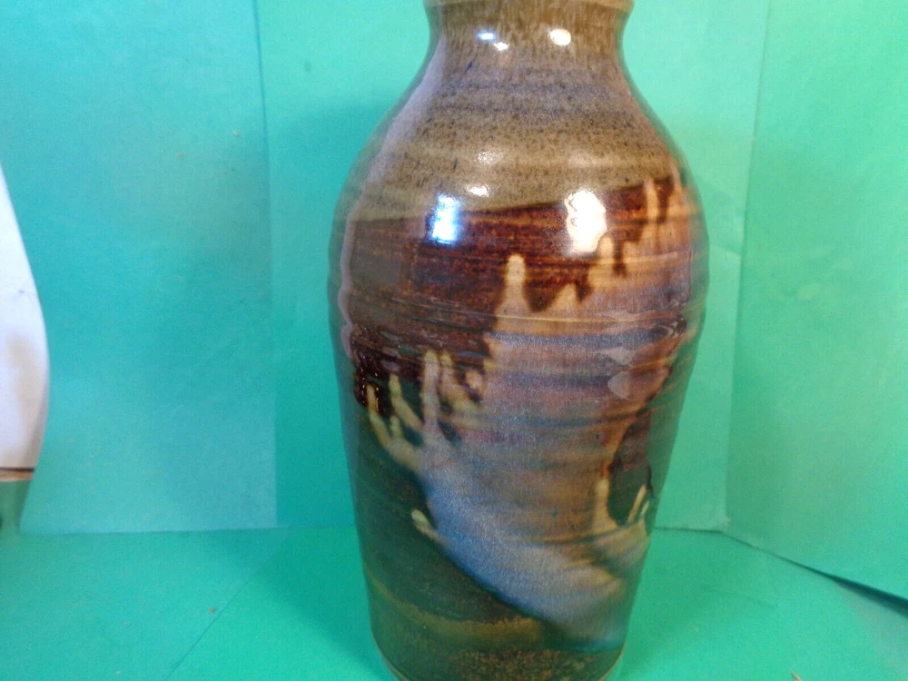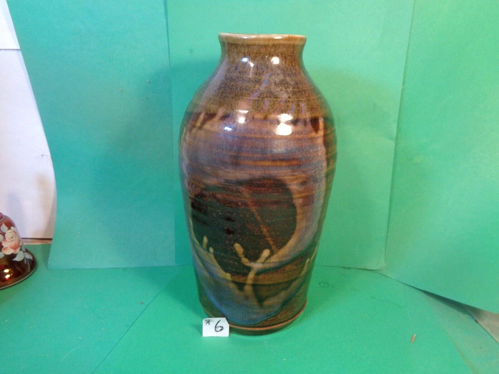 This is a lot of 1 studio art pottery "Drip Glaze Pattern" vase. The vase is 9" tall and 2 3/8" across the top. The vase measures 3 5/8" across the bottom. It is in "Excellent Used Condition", please see photos. The vase has no chips, scratches, or cracks. Free shipping in the U.S.A. *6