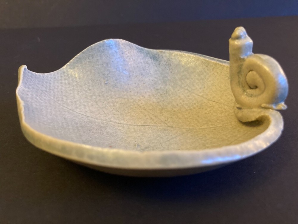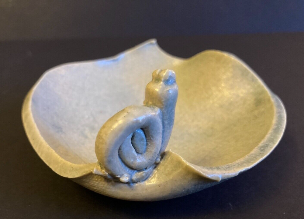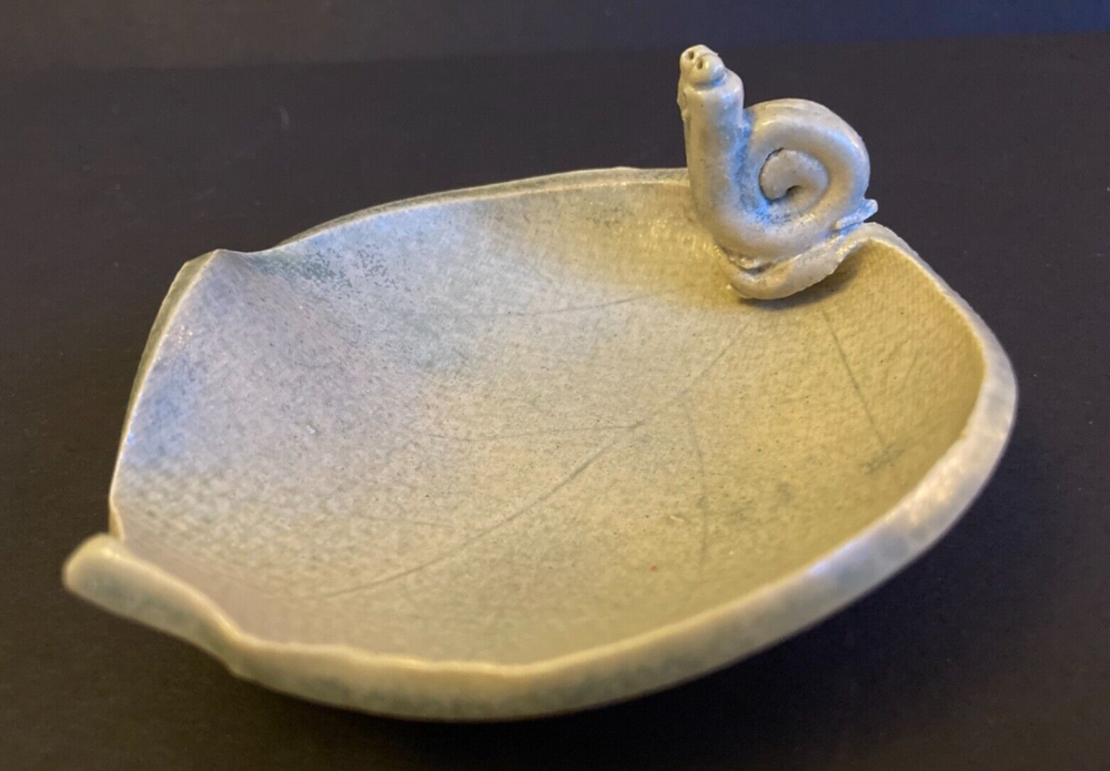 Studio Artisan Made Pottery Green Leaf With Snail Matte Glaze Trinket Ring Dish Great preowned condition No chips, cracks, or condition issues See photos for details Approximate measurements: 4.25 inches long 4 inches wide 1.75 inches high Please contact seller with questions prior to the sale Ships USPS Ground Advantage