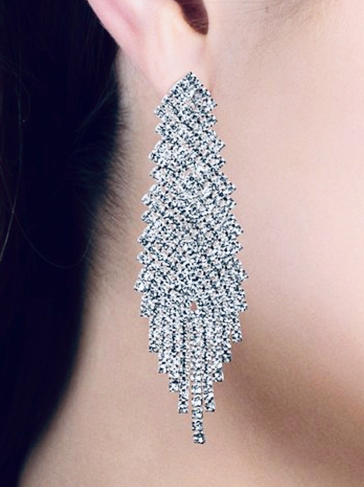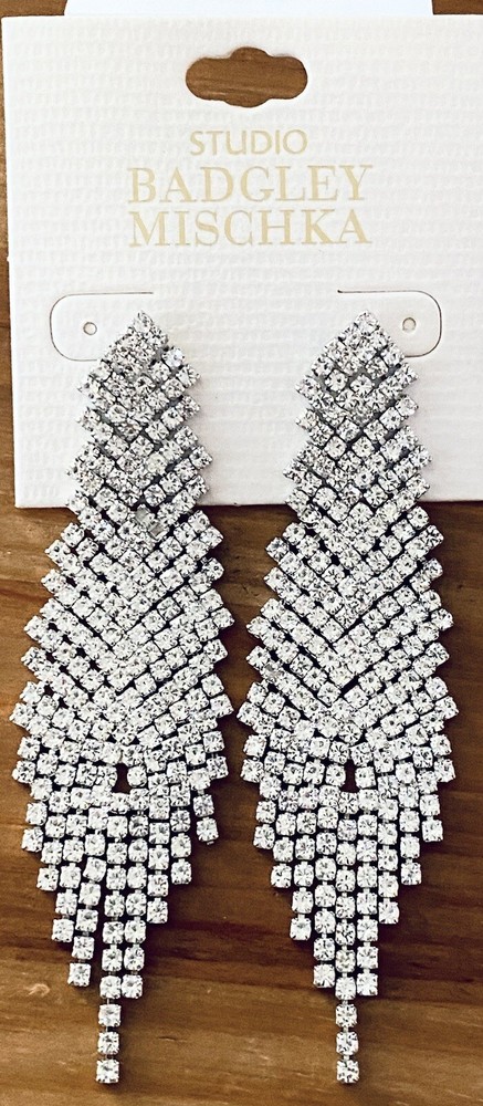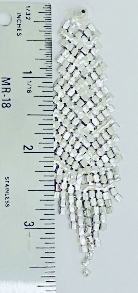Studio Badgley Mischka Rhinestone & Silvertone Mesh Fringe Drop Earrings 3.57'' long x 1.08” W ~ Cast in a timeless silvertone with shimmering rhinestones, these “swishy” mesh fringe drop earrings do anything but blend in. Dress up your everyday tees, or pair them with your favorite formal dresses for show-stopping glamour. Customer satisfaction is my priority. Your paid order will typically ship the same business day (Mon-Fri) if received by 2:00 pm Pacific time. I will accept a return within 14 days and issue a refund when the item is in its original, new condition. Thank you for shopping with Tiny-Seller!