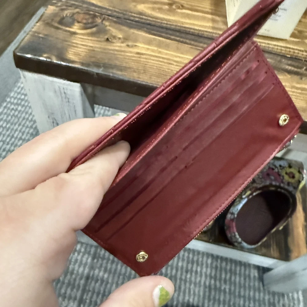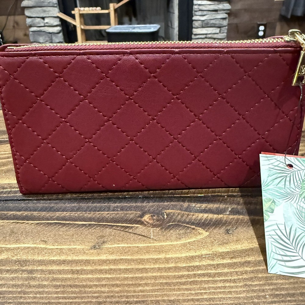 This stylish wallet is perfect for staying organized while looking chic! The wine-colored faux leather with diamond quilting and studded accents adds a luxurious touch. It’s surprisingly spacious with plenty of card slots, a zippered compartment, and even fits a phone. Lightweight yet durable, it’s a great everyday accessory that holds everything without bulk. Love the elegant design and functionality—definitely worth it!