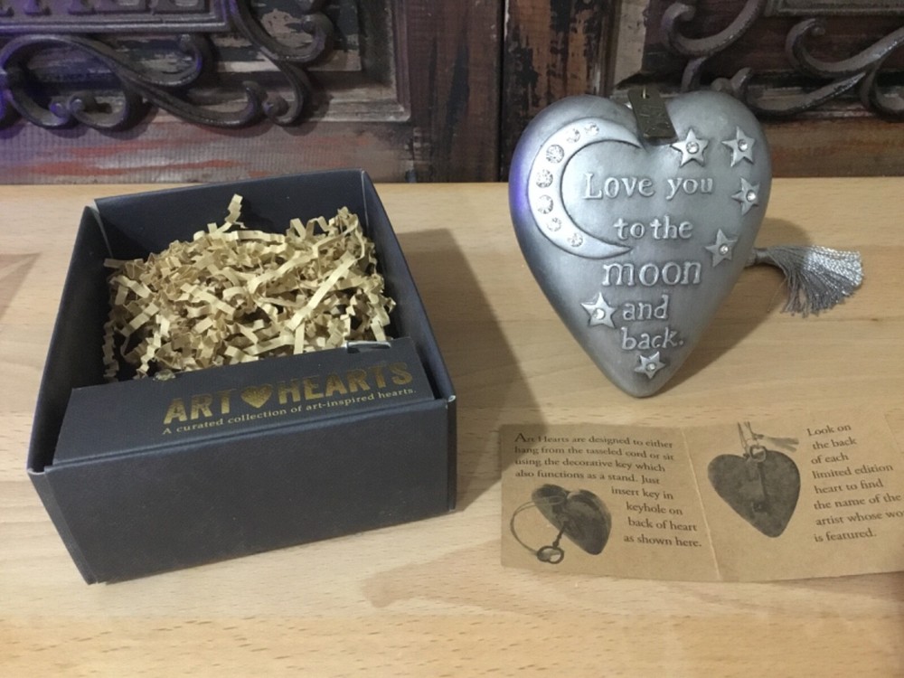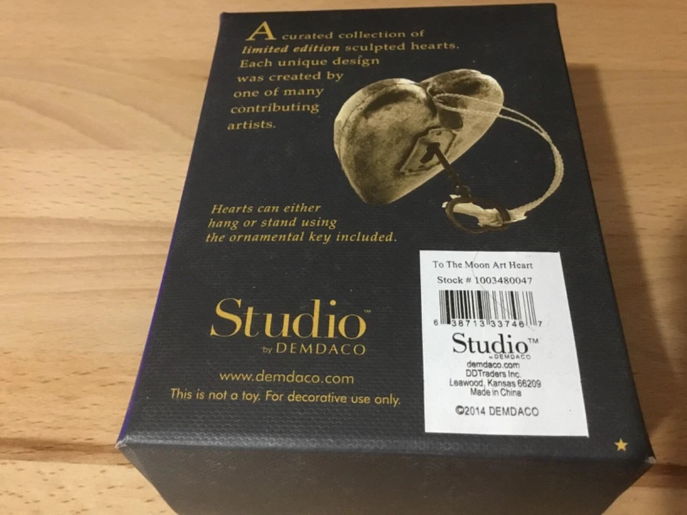 Up for up our consideration to purchase is this brand new Studio by Demdaco Art Heart “Love you to the moon and back” . The key locks into place and serves as brace to hold the heart in place or you can hang it. This is a clever unique piece of art for your desk, shelf or hang from a preferred location. I do my very best to take clear pictures and use accurate descriptions, please email me with any questions prior to bidding. All items are from a smoke free environment. I do not except returns unless I have grossly misrepresented the item or if there is a major flaw I may have overlooked. If you are unsure the item will fit please ask if the measurements are not already included. Colors of images may differ slightly from actual items due to the calibration of computer screens and device interpretations. Please ensure shipping address is correct via eBay and PayPal before issuing payment. Ebay and PayPal policies do not allow me to adjust the address after payment has been made without canceling the transaction. I will only ship to an eBay and PayPal verified address. Also make sure it’s shipping to a secure location, I have had an item taken off my porch. Now I have things delivered to my office or my neighbor accepts it. Sad! PayPal payment only. Payment due within two days close of auction or immediate payment on “Buy It Now” items. I will ship within one full business day from receipt of payment. I do combine shipping, but please contact me for prices. Prices vary depending on items. I only ship domestic for right now, I’m sorry. Please contact me first before leaving poor feedback if there is an issue or defect I may have missed with your item/items. I may not be an experienced seller but I am and experienced buyer. I know what is important in customer service and I want your purchase to be an enjoyable one. I know that your money is HARD EARNED! Thanks for stopping by! Rest assured if the shipping is less than the quoted I will refund your paypal account less packing supplies. It’s hard to guess because the buyer may be close or across the country. If an item is over $100 a signature is required upon delivery. Due to the new internet TAX laws, tax according to your State will be charged