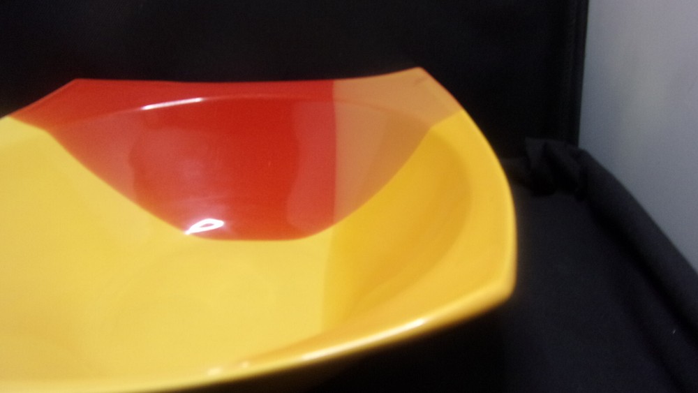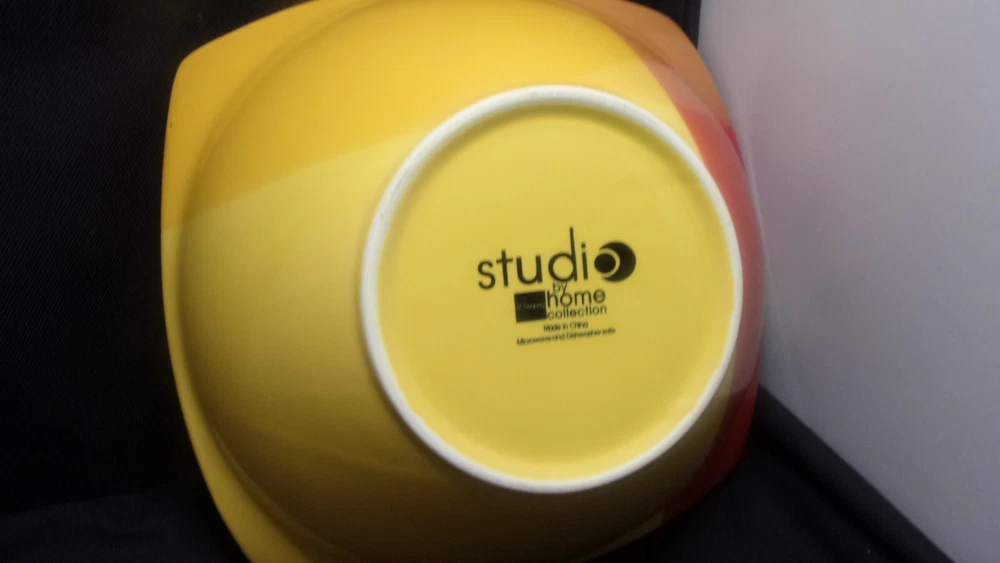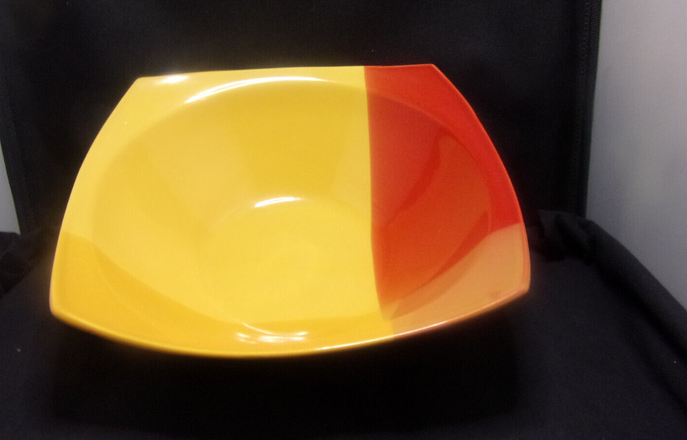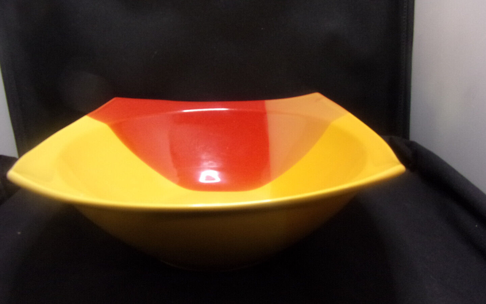 Elevate your dining experience with the Studio By Home JCPenny Collection's Colortones Red 9.5" square vegetable bowl. A striking piece from the late 20th-century, this stoneware bowl showcases an eye-catching patchwork design in vibrant red and orange tones that will enliven any table setting. Its contemporary style, combined with the practicality of being both dishwasher and microwave safe, makes it not only a decorative addition but also a functional kitchen staple. Carefully crafted with a glossy finish, this bowl exemplifies the quality of American art pottery from the 1990s. The square shape adds a modern touch to your serveware collection, perfect for all occasions. Whether used for special gatherings or everyday meals, this unique piece from the JCPenny product line brings a blend of style and convenience to your home.
