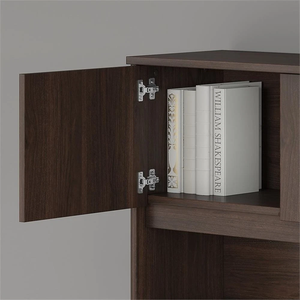Choose this Bush Business Furniture Studio C L Shaped Desk with Hutch and Mobile File Cabinet for a comfortable design that works with you for years. The thermally fused laminate finish, durable edge banding and sturdy end panels resist scratches, stains and dents while standing up to the rigors of a 40-plus hour work week. The 42W Return attaches to either side of the 72W Desk to form a left or right handed L Shaped layout. With 4 doors featuring self-closing Euro-style hinges, the Hutch conveniently stores office supplies, books and more. The 3 Drawer File Cabinet rolls throughout your office or remains in place as needed on any surface. One file drawer accepts legal, letter and A4-size paperwork while two box drawers organize supplies. This desk with storage set comes with a 10 Year Warranty and meets ANSI/BIFMA quality test standards. American made with U.S. and imported parts. Features: Bundle includes: 72W x 30D Office Desk, 42W Desk Return, 72W Hutch, 3 Drawer Mobile File Cabinet Thermally fused laminate finish fends off scratches and stains to protect the office furniture set L Shaped Desk surface offers space to spread out and integrated cable management to conceal computer cords Return attaches to either side of the Desk to form a right or left handed layout 4 Hutch doors provide plenty of storage room and include self-closing Euro-style hinges Mobile File Cabinet locks to secure your letter, legal and A4 size paperwork with a file drawer gliding on smooth full-extension ball bearing slides Filing cabinet includes 2 box drawers with 1 file drawer and rolls wherever you need it Tested to meet ANSI/BIFMA quality standards for safety and performance Backed by the Bush Business Furniture 10 Year Manufacturer's Warranty Specifications: Assembly Required: Yes Product Color: Black Walnut Material: Engineered Wood