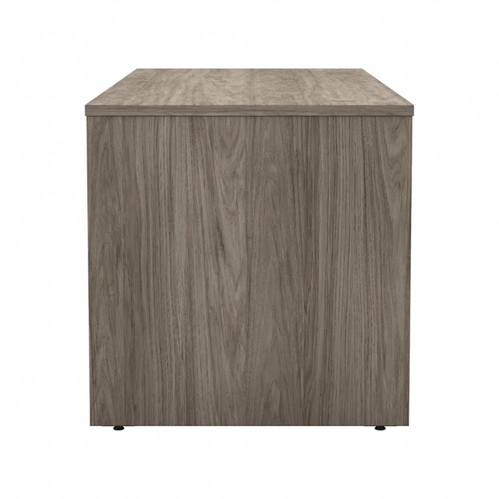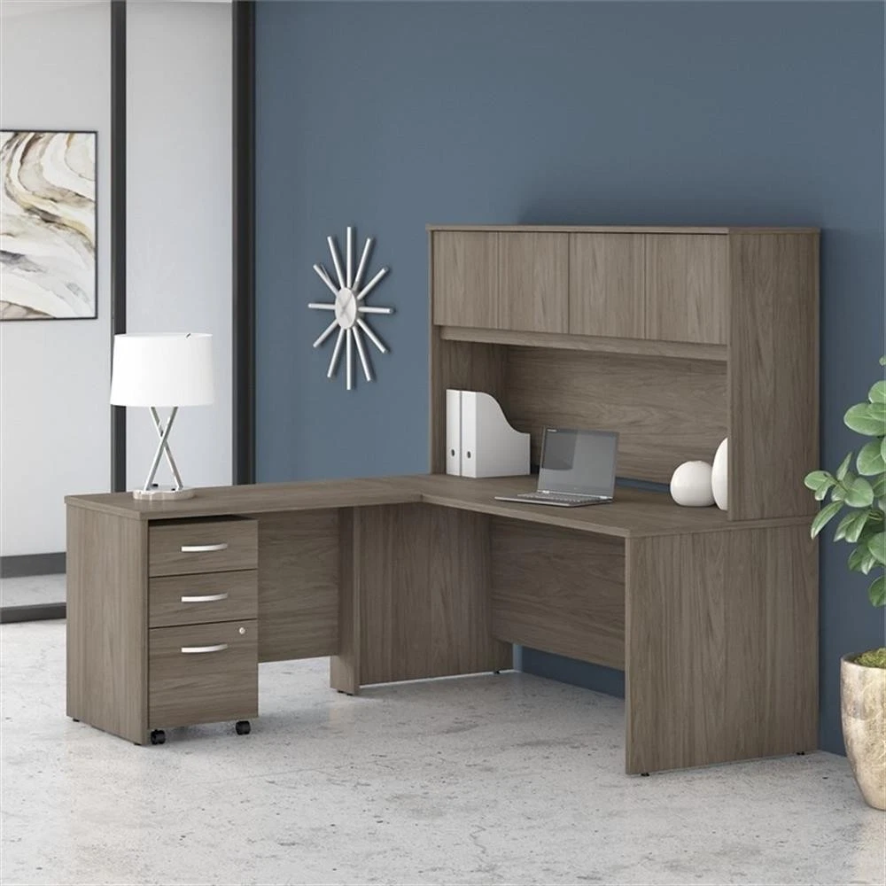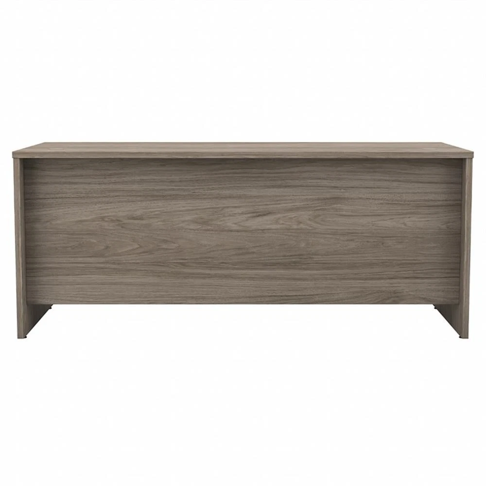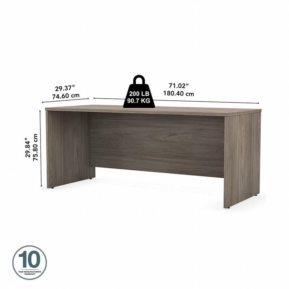 Choose the Bush Business Furniture Studio C 72W Office Desk for a durable design that works hard for years with a fresh finish that looks great anywhere. A thick surface, an extended modesty panel and clean lines convey a classic look that's available in several contemporary or traditional finishes to fit any workspace. The thermally fused laminate finish, durable edge banding and sturdy end panels resist scratches, stains and dents while standing up to the rigors of a 40-plus hour work week. Keep pesky computer cords out of your way with an integrated cable management system for an organized work surface. This computer desk is backed by a 10 Year Manufacturer's Warranty and meets ANSI/BIFMA quality test standards for safety and performance. See the full collection for coordinating items available to make your office your own with Studio C. American made with U.S. and imported parts. Materials: Engineered wood and Laminates. Features: Durable thermally fused laminate finish fends off scratches and stains to protect the Office Desk 72W x 30D surface offers space to spread out and integrated cable management to conceal computer cords Clean lines and extended modesty panel provide a professional feel Can be used with coordinating Studio C products to form L Shaped and U Shaped Desks Accepts Mobile File Cabinets, Pencil Drawer or Keyboard Tray (all sold separately) to complete your office Computer desk is available in several contemporary and traditional finishes to complement any office Tested to meet ANSI/BIFMA quality standards for safety and performance Backed by the Bush Business Furniture 10 Year Manufacturer's Warranty Specifications: Product Dimensions: 72W x 30D Desk Shell: 71.02"W x 29.37"D x 29.84"H Product Color: Modern Hickory Assembly Required: Yes