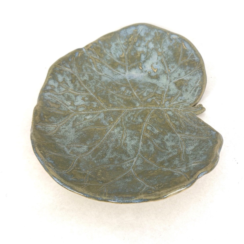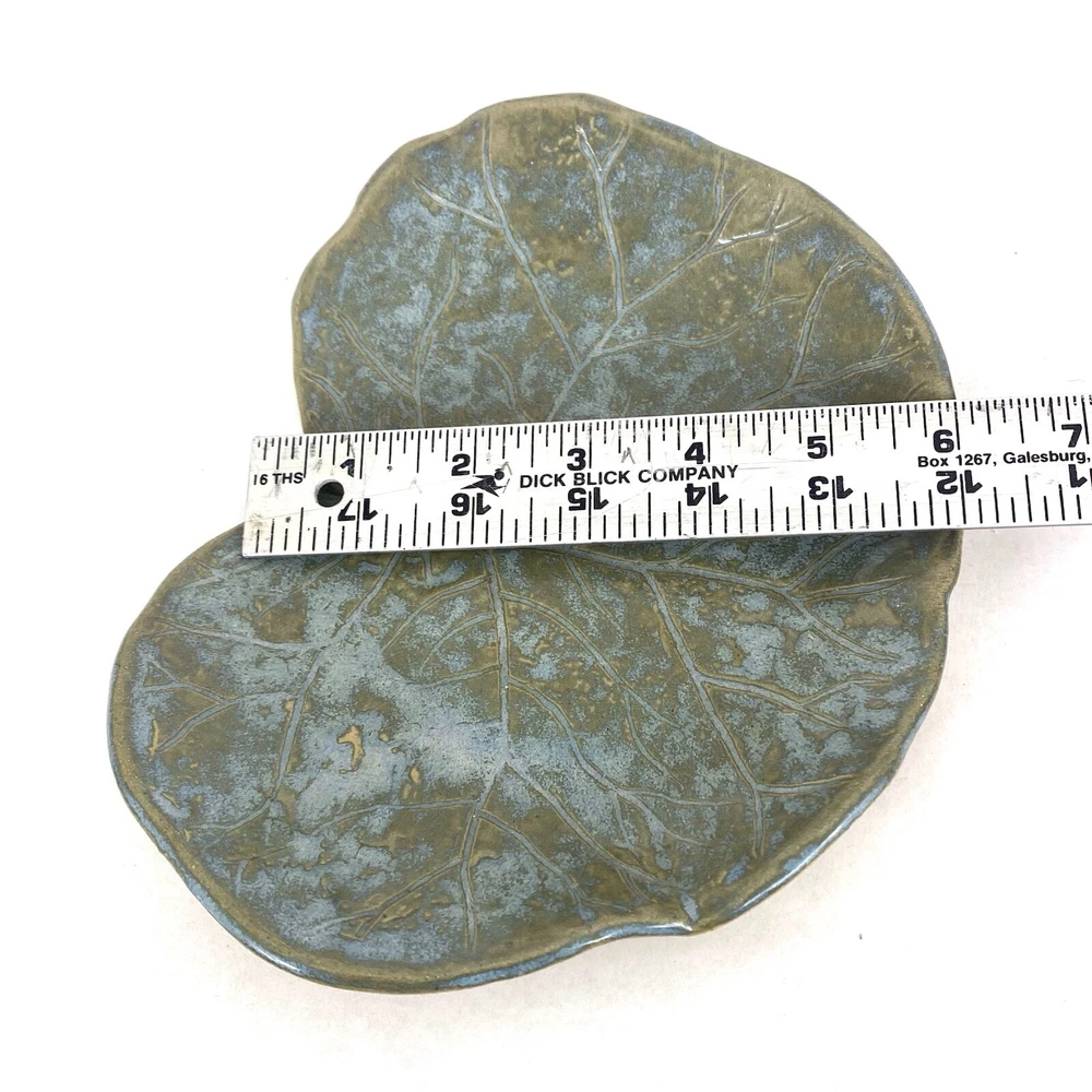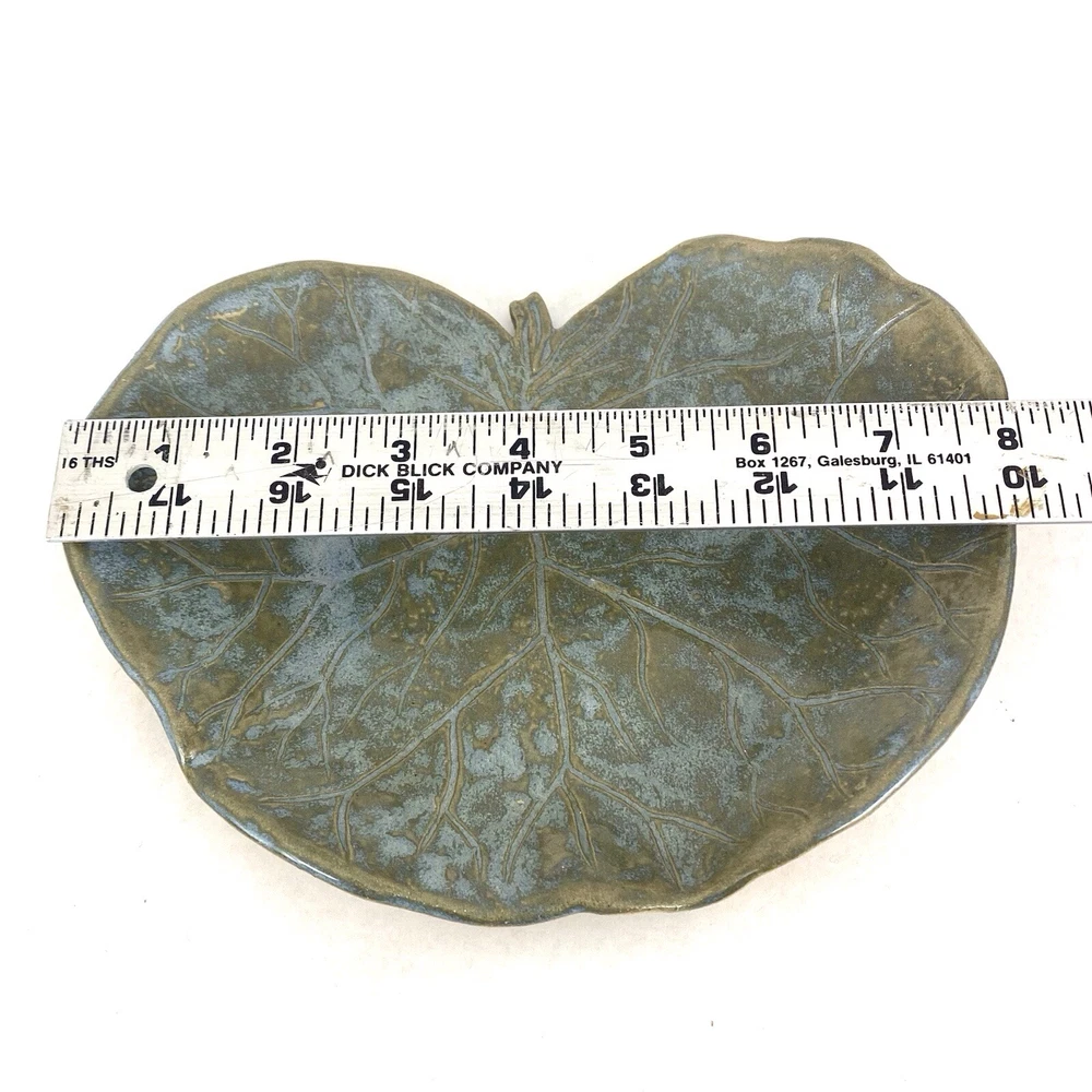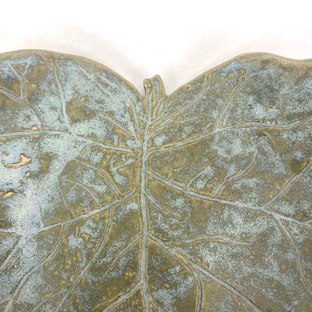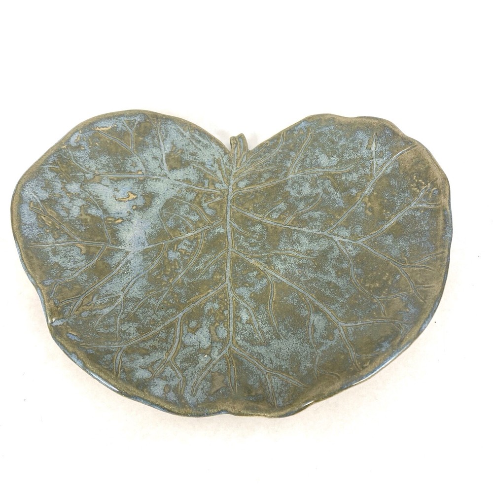 Studio Crafted Leaf Shaped Dish 8”x6” Green With Etched Details...