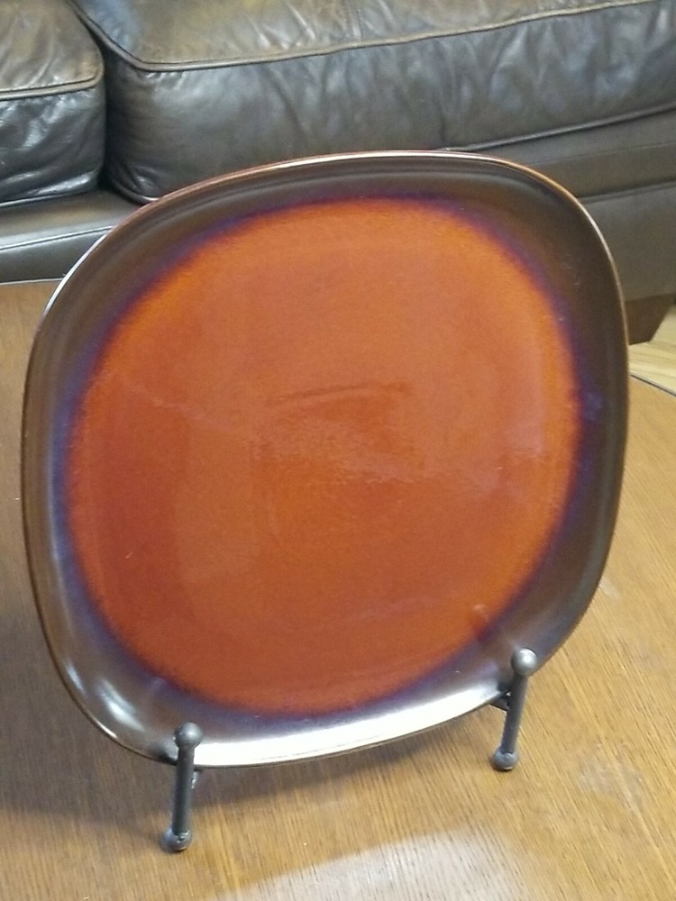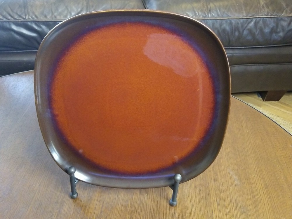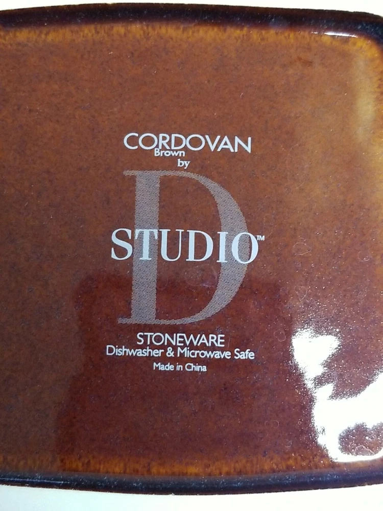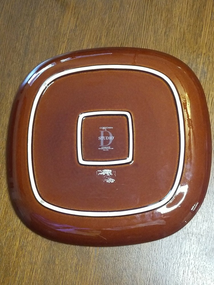 This is a Studio D Cordovan-Brown 14" Square Serving Platter. The edge is Chocolate Brown, the center is Cordovan making this platter a beautiful serving piece or charger for any room! No chips or cracks, signs of use, marks of use, nothing to affect the beauty of the plate. -Discontinued- 2007-2008