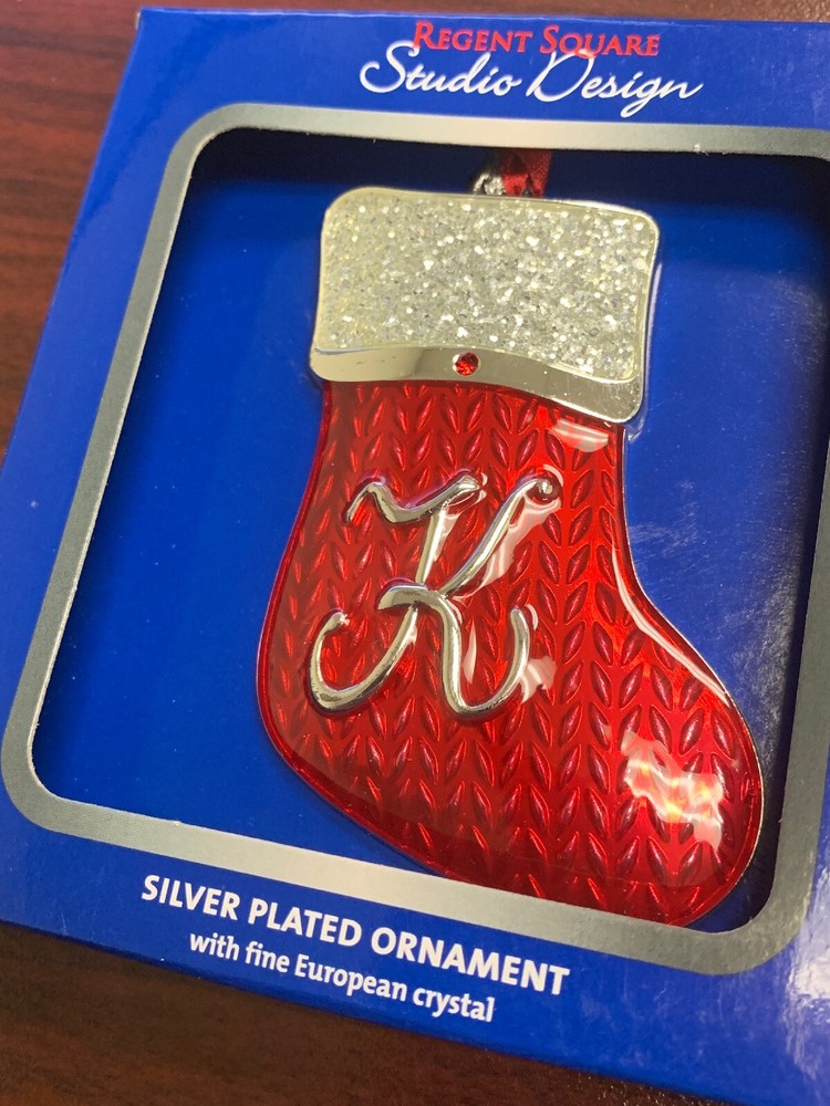 Studio Design Regent Square Christmas Ornament New Aprox Size: 3" H x 2" W( widest part of stocking ornament) Silver Plated Ornament with fine European Crystal Fast shipping! Thank You!