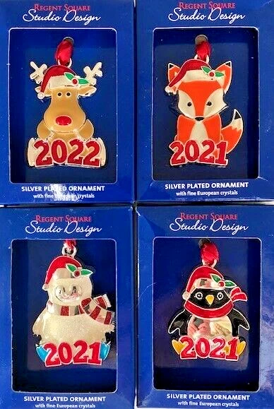 Decorate with these adorable animal ornaments. These cute critters are silver plated and feature fine European crystals. This is a set of four. You will receive a moose dated 2022, a fox dated 2021, a polar bear/Yeti (?) dated 2021, and a penguin dated 2021. Don't miss this opportunity to hang these lovely ornaments on your tree this Christmas. General disclosure from Seller **Please read carefully before bidding** Please review the photos carefully before bidding. The photos are an important part of the description. Seller has made a good-faith attempt to describe all items accurately and to note any condition; however, Seller has no specialized training or knowledge about items listed. Items are described as they appear, and Bidder agrees that nothing contained in any description constitutes a warranty or guarantee about items listed. Buyer agrees that Seller's responsibility ends once Seller places item with the Shipper. Buyer agrees that Seller will not be held liable for any lost or stolen item once the item has been placed into the Shipper's care, control and custody. Buyer agrees that Seller will not indemnify Buyer for any claim denied or amended by Shipper. In the unlikely event of damage or loss, Buyer will need to provide photos of damaged item and packaging, and Buyer agrees to take any other steps required by the carrier to process a damage claim. Seller may not have personally used this item. Accordingly, Seller may not be aware of all possible condition issues. If you have questions, please ask before bidding. Thank you for shopping!