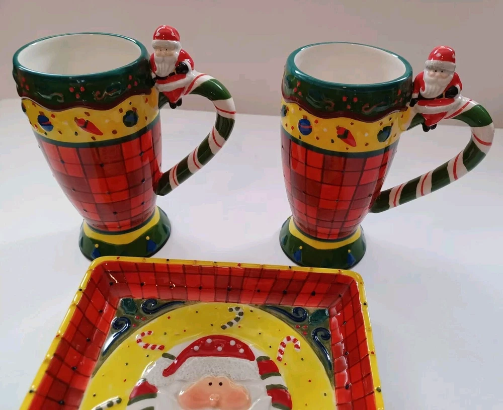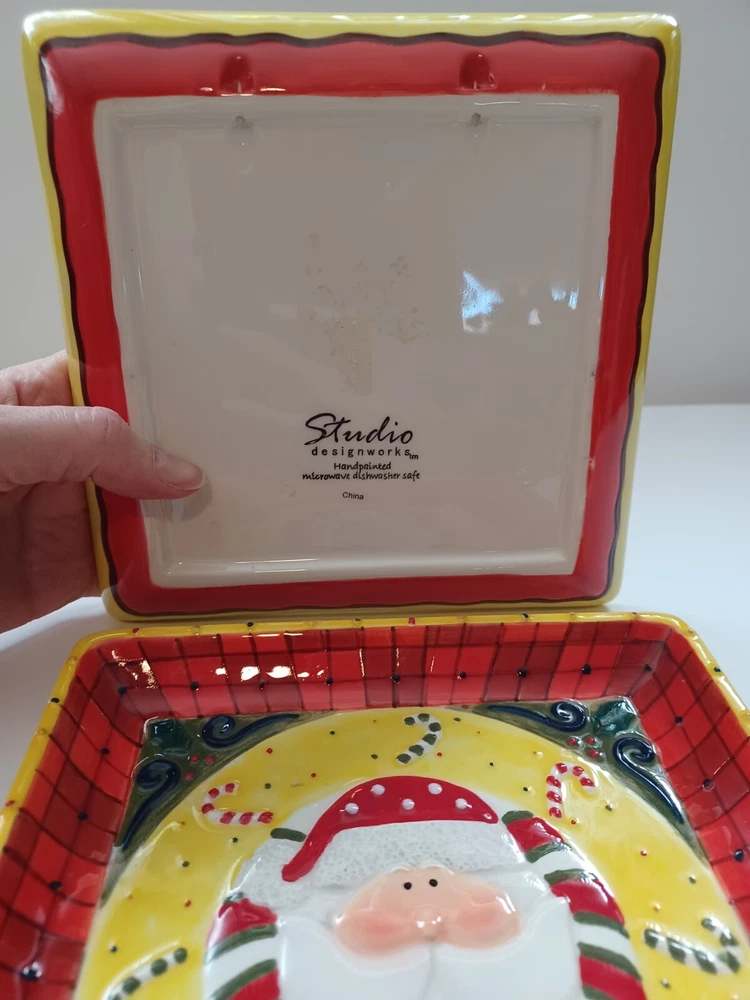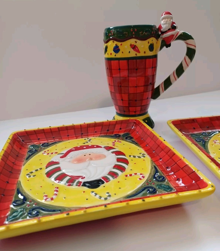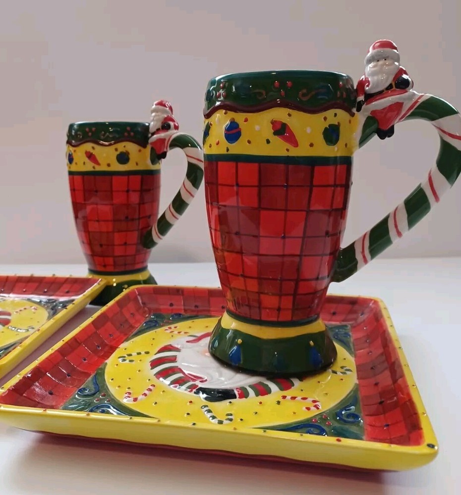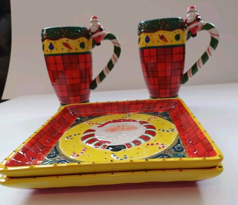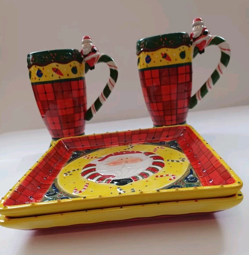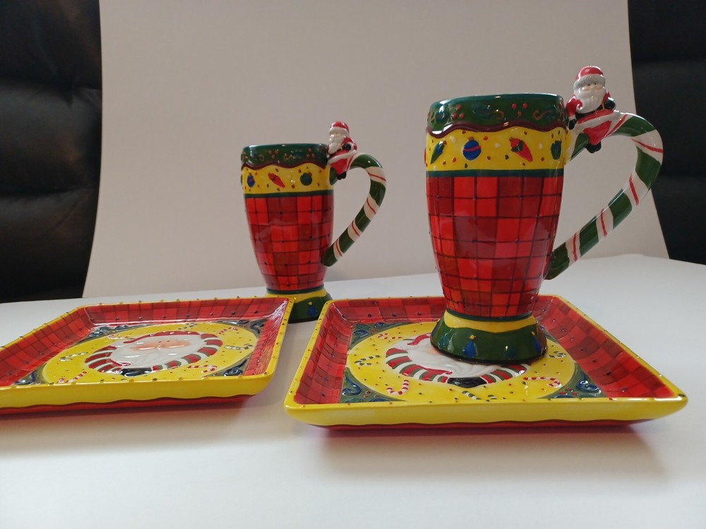 This unique set of Studio Designworks Santa Christmas APPitizer/Cookie/Candy/wallhanging is sure to add a festive touch to your holiday collection. The handpainted mixed color ceramic material is carefully crafted to create a stunning and personalized touch for your Christmas decor. This 2 plates & 2 mug set is perfect for enjoying your favorite hot beverage during the holiday season. With a focus on quality and attention to detail, this set is manufactured in China and features a handmade touch. The set comes in a unit quantity of 2 sets and is perfect for collectors or anyone looking to add a special touch to their holiday decor. The Studio Designworks Santa Christmas APPetizer Cookie, Candy ,or a plate wallhanging set is a must-have for anyone who wants to celebrate the holiday season in style.