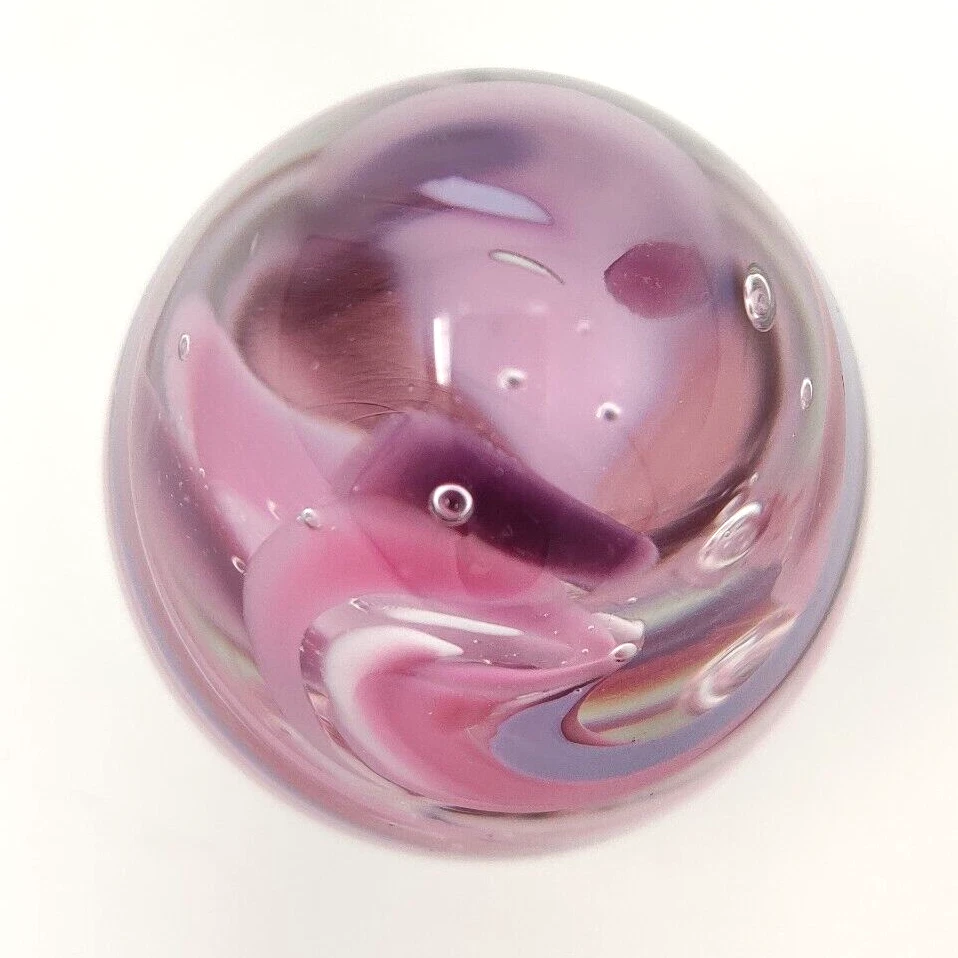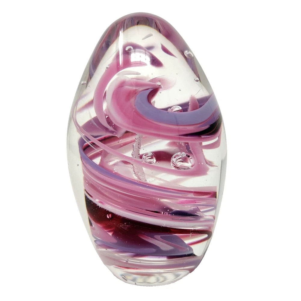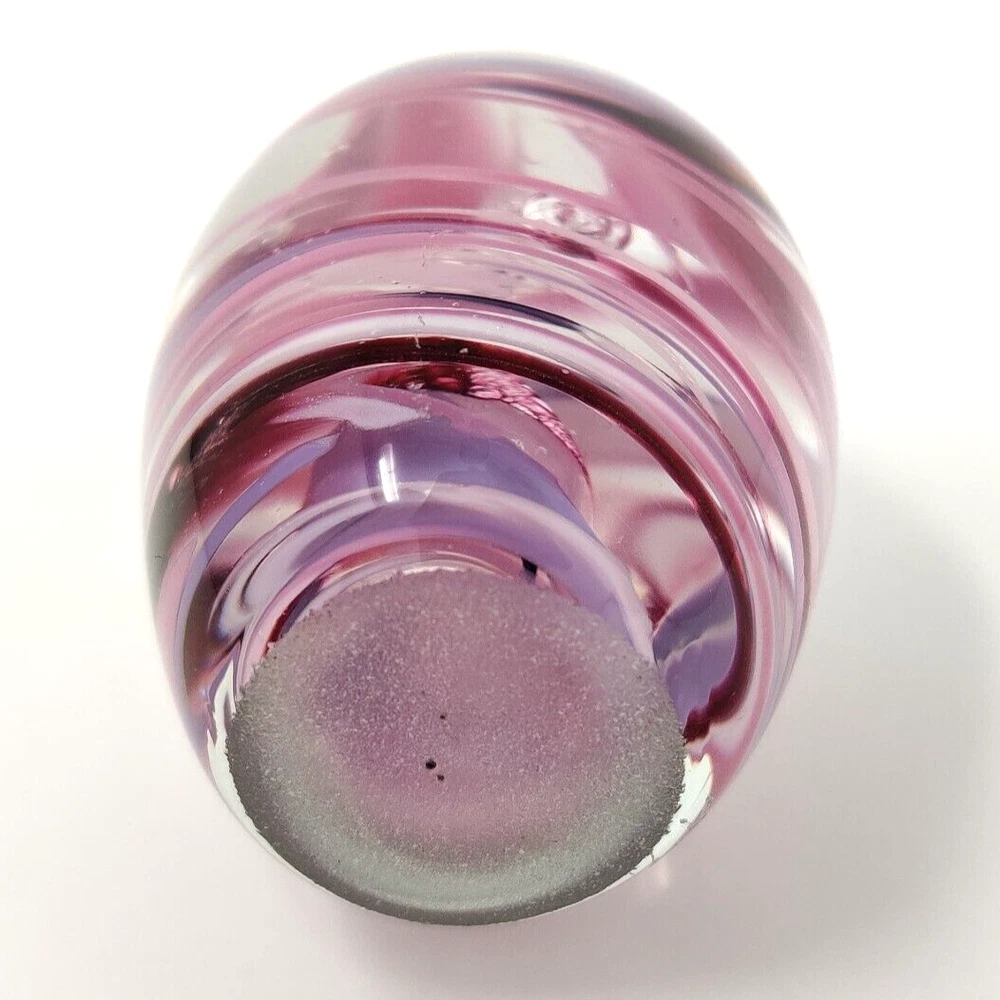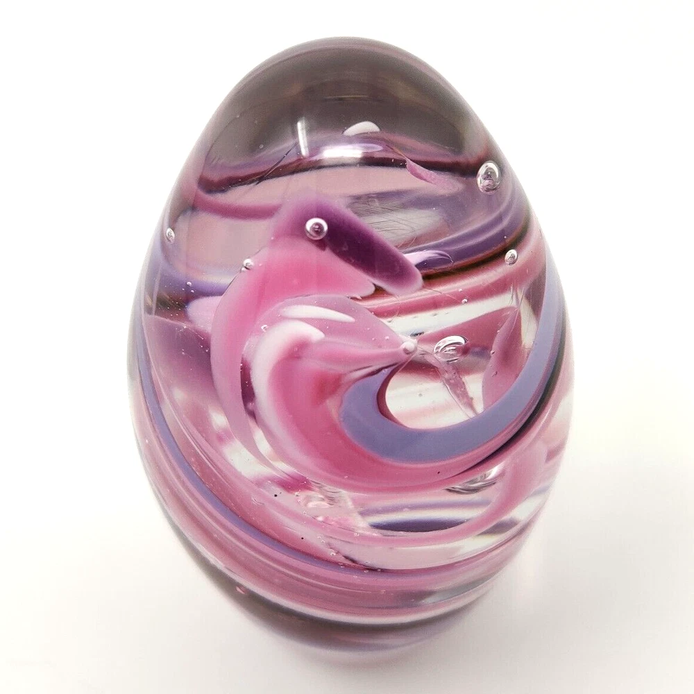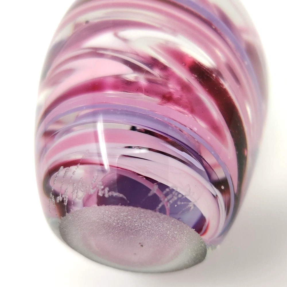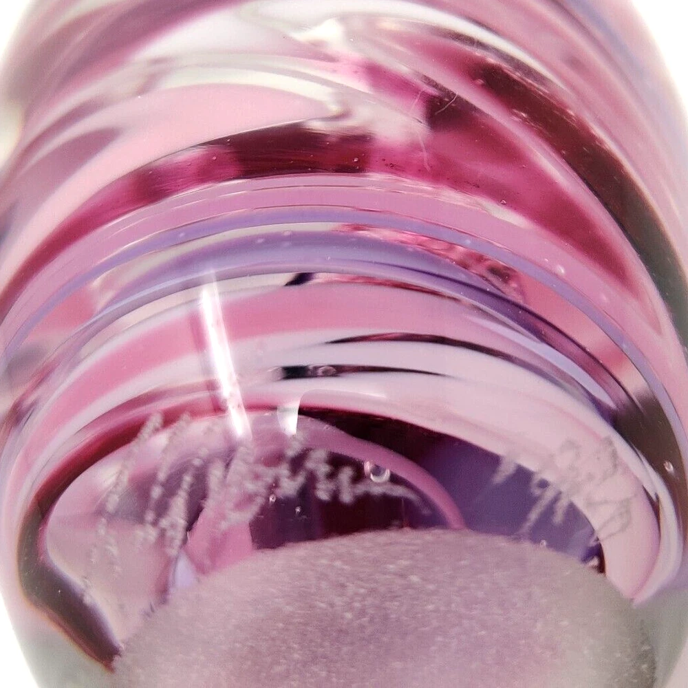Studio Glass Art Glass Egg Shaped Paperweight Signed Dated 1998 Rose Pink Purple Paperweight is in excellent pre-owned condition with no chips or cracks. Please review photos carefully for details/condition, and feel free to send a message if you have any questions or want to see something closer or from another angle. Thank you for looking.