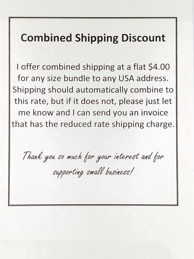Please see the about this item section of the listing for size information, condition description and more! Thank you for your interest in our store! We have thousands of listings and are adding more each day. Our shipping policy is as follows: We ship out same business day when purchased by 6:00 AM EST. Everything after that ships out next business day.. Business days are Monday - Friday (the exception being when there is a USPS holiday). If you have any issues with your order, please do not hesitate to reach out to us directly. We offer FREE returns for ANY reason. We would love the opportunity to fix any issue that may arise. We are a small family run business and are thankful for your support!