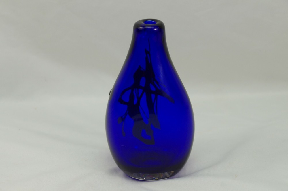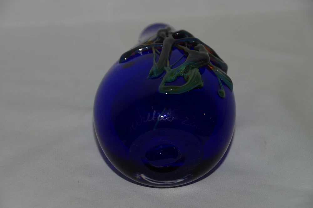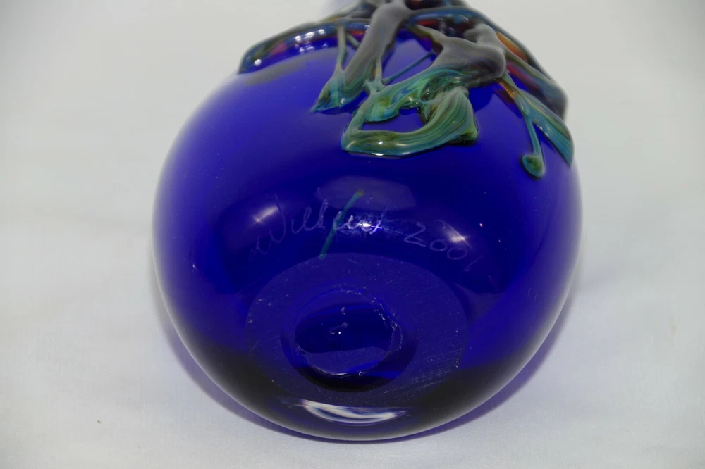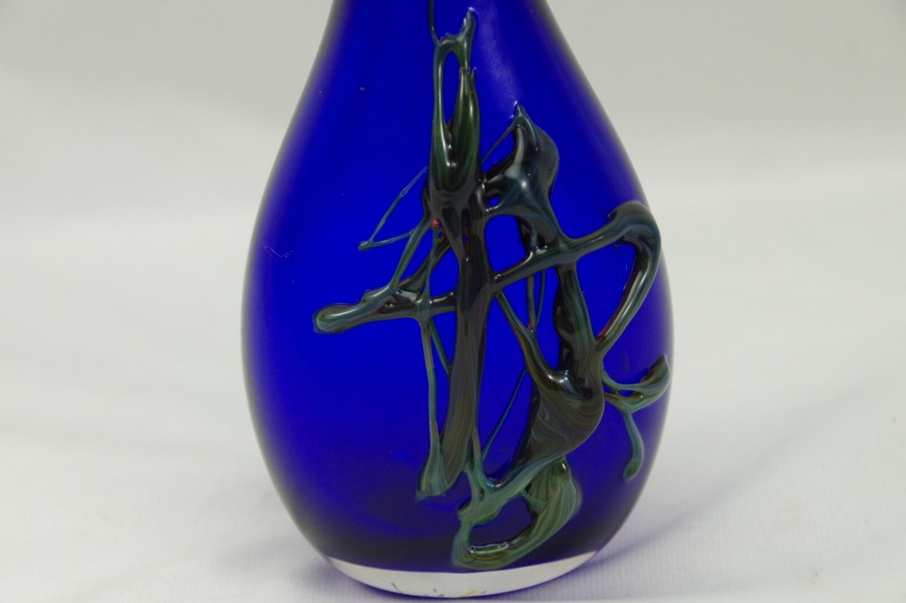 Studio Art Glass Hand Blown Flask Shaped Bottle Cobalt Blue with Green design Signed William 2001 Height: 5 3/8" See Pictures for accurate description Plase Check out my other items ! Be sure to add me to your favorites! 17200010C0200OS919