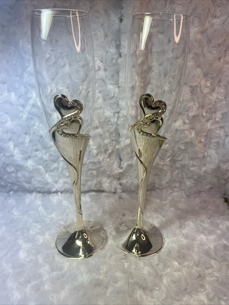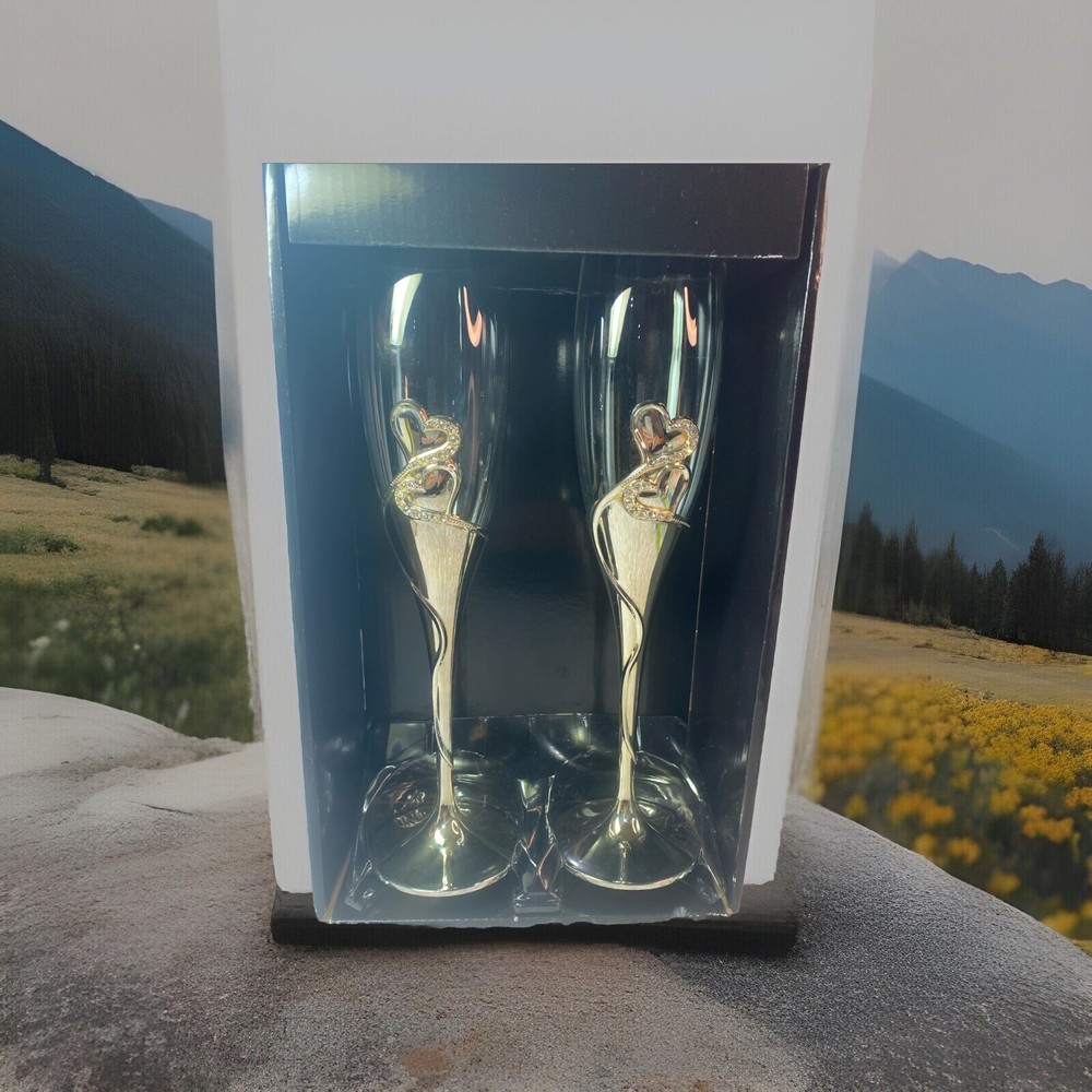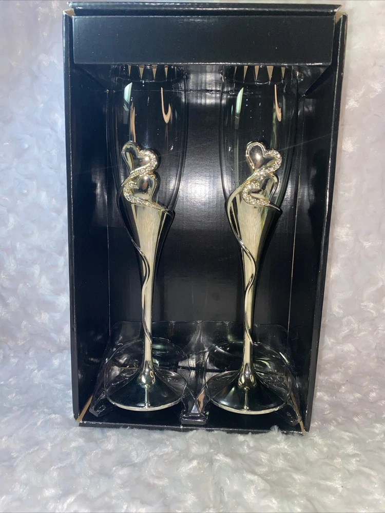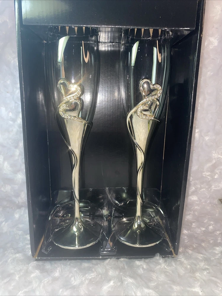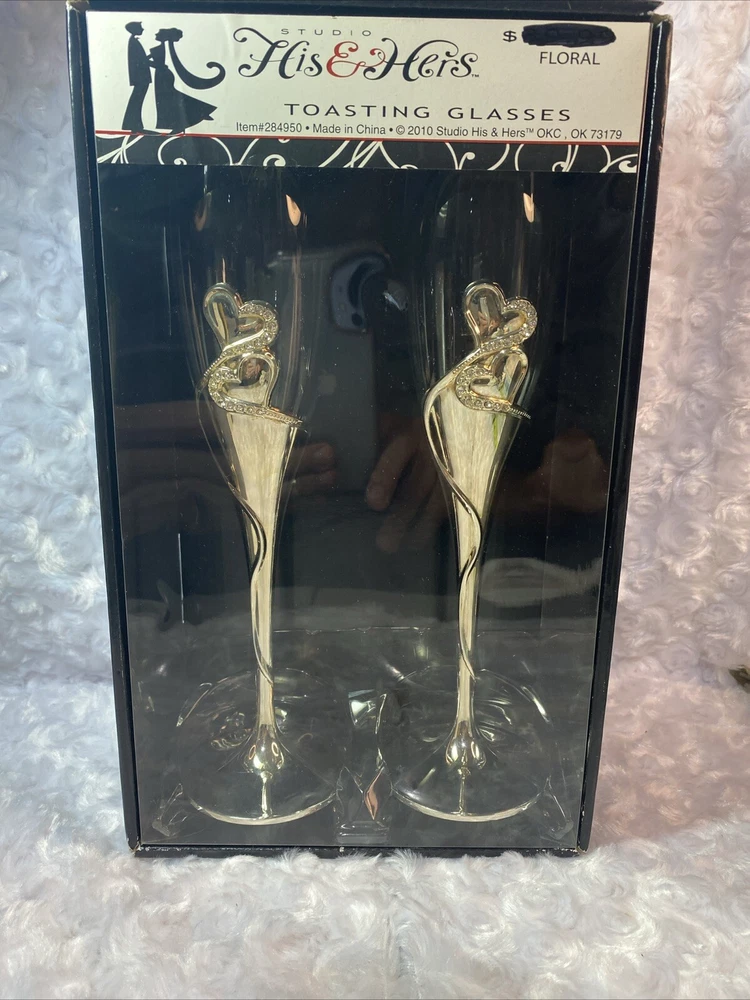 Raise a toast in style with these elegant Studio His & Hers Toasting Glasses. The glasses feature a beautiful heart-shaped design with goldtone rhinestones and clear glass. With a capacity of 50 ml, these champagne glasses are perfect for any occasion. Crafted from high-quality glass, metal, and crystal, these toasting glasses are durable and long-lasting. The glasses are easy to clean and maintain, making them a great addition to your home bar or collection. Whether you're hosting a wedding, party, or just want to enjoy a glass of champagne, these Studio His & Hers Toasting Glasses are the perfect choice.