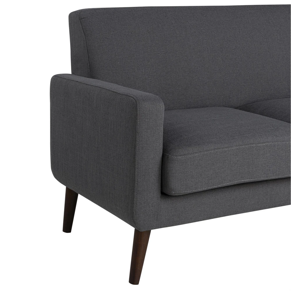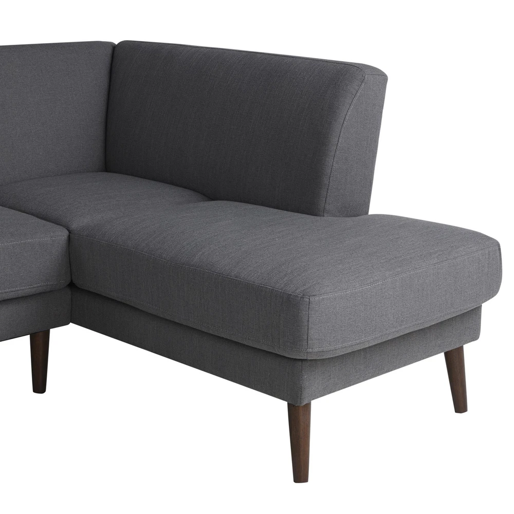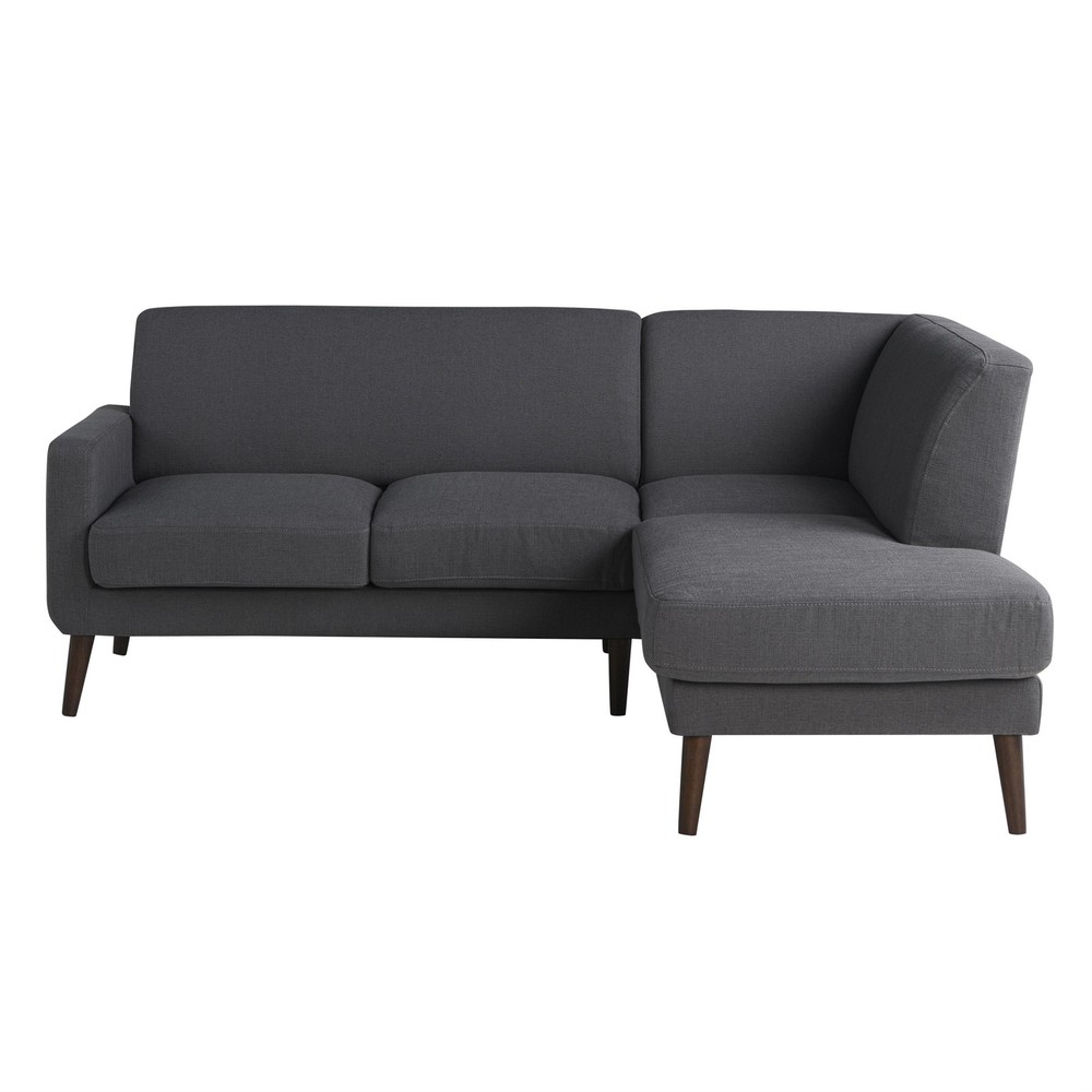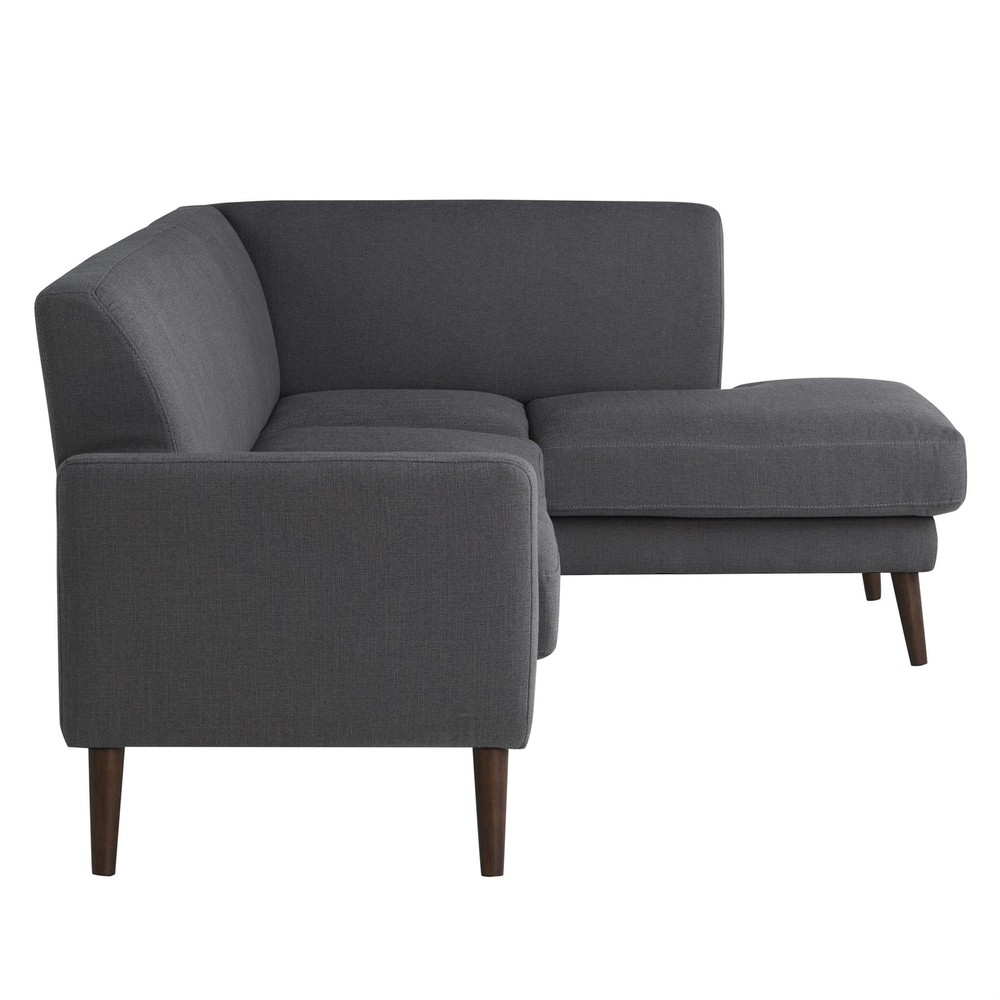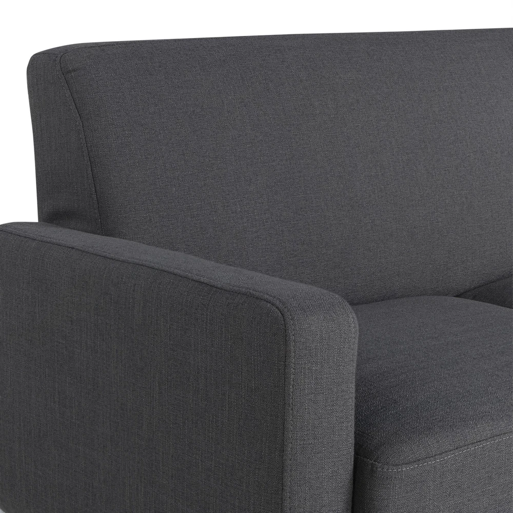Introducing the Solano Bumper Sectional Sofa, a perfect blend of durability and comfort. This sofa features a kiln-dried solid hardwood frame and sturdy rubber wood legs, ensuring long-lasting support. With pocket coils and high-density foams, it provides exceptional comfort. The removable seat and back cushions add versatility and ease of maintenance, while the quality charcoal fabric upholstery offers a touch of elegance to any living space. Features: Kiln-dried solid hardwood frame for durability Sturdy rubber wood legs Pocket coils and high-density foams for superior comfort Removable seat and back cushions for easy maintenance Lovesesat and chaise sectional Easy tooless assembly Specifications: Sectional Dimensions: 83.5" W x 63.4" D x 35.4" H Seat Dimensions: 102.7" W x 21.7" D x 19.7" H Arm Height: 25.4" Arm Width: 4.7"
