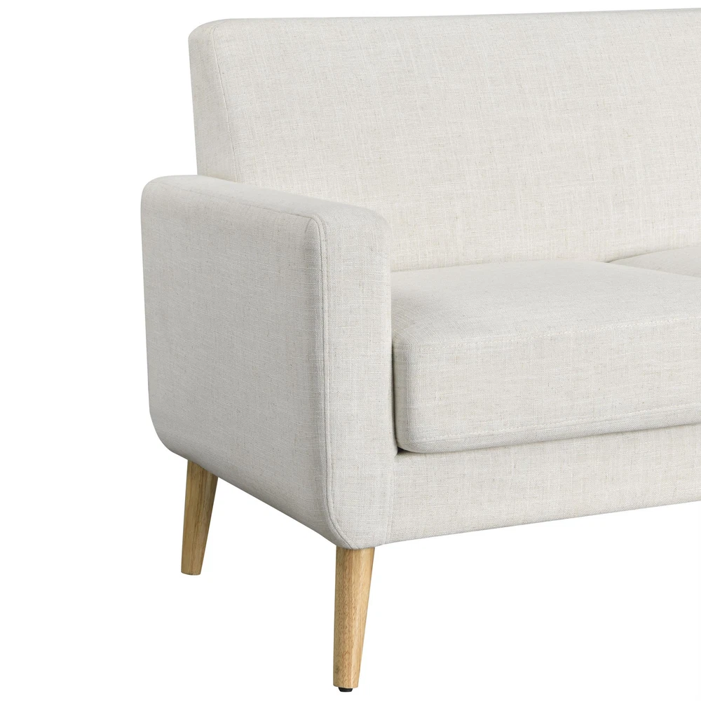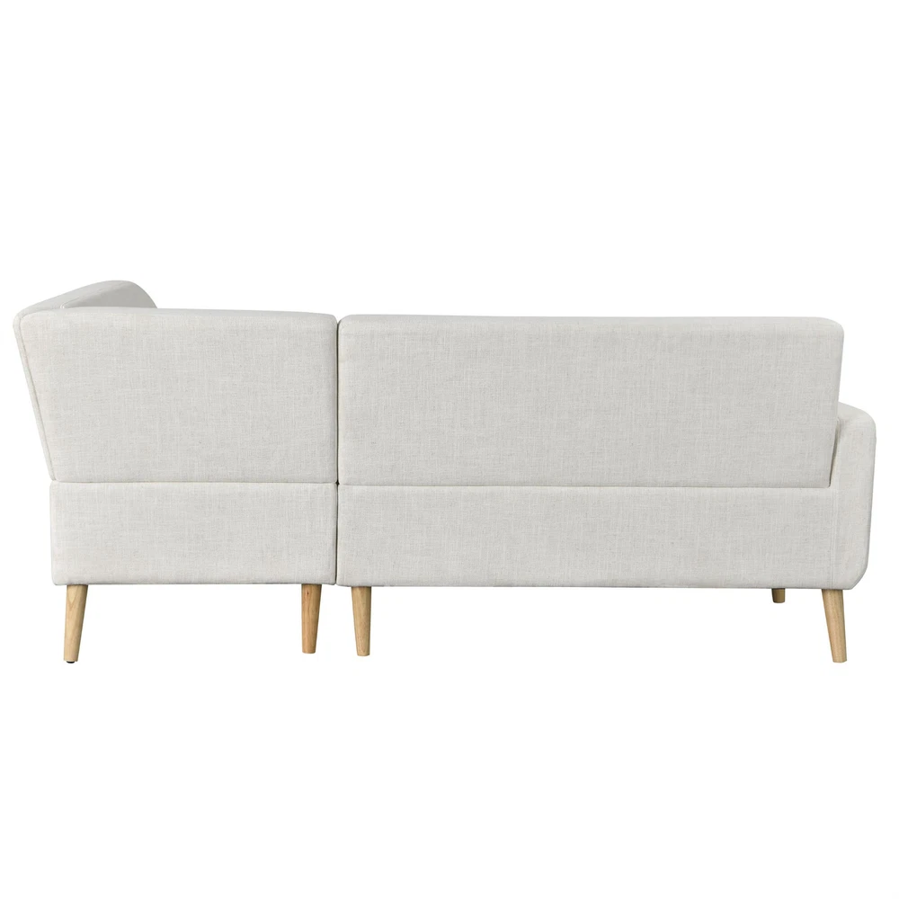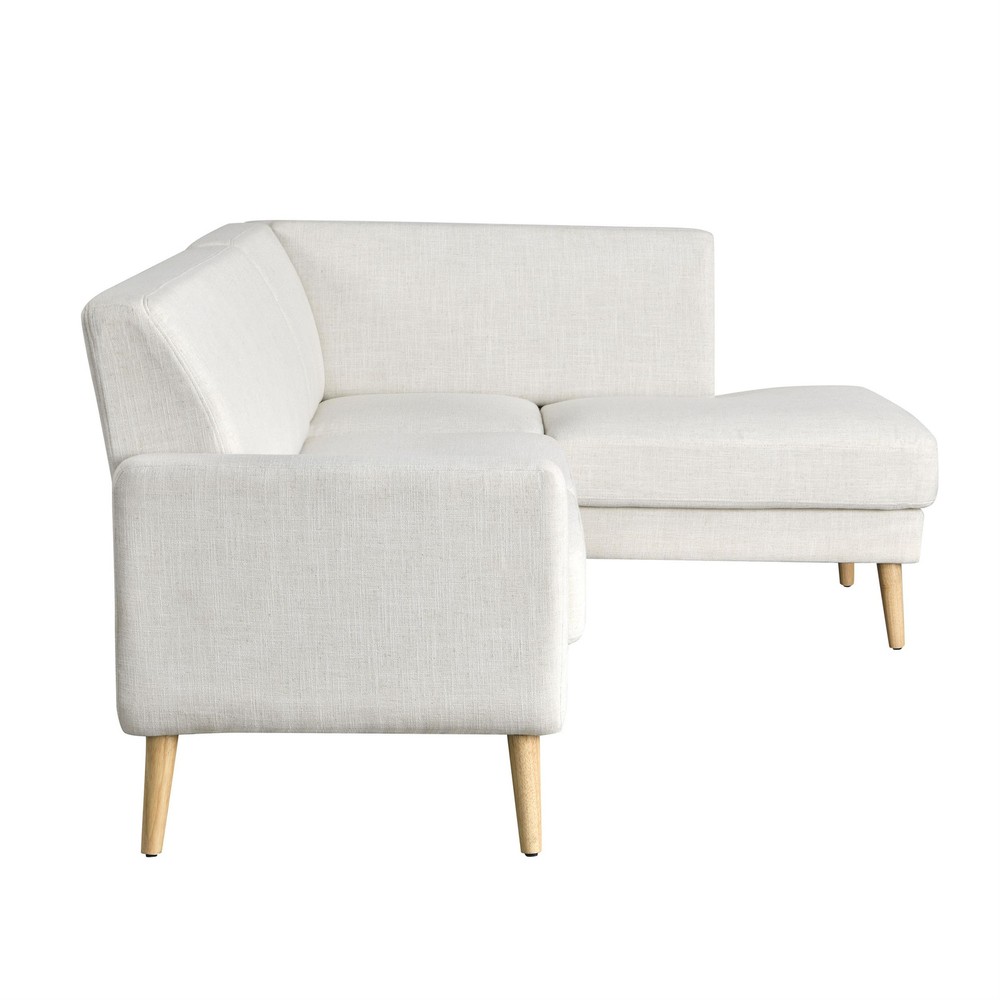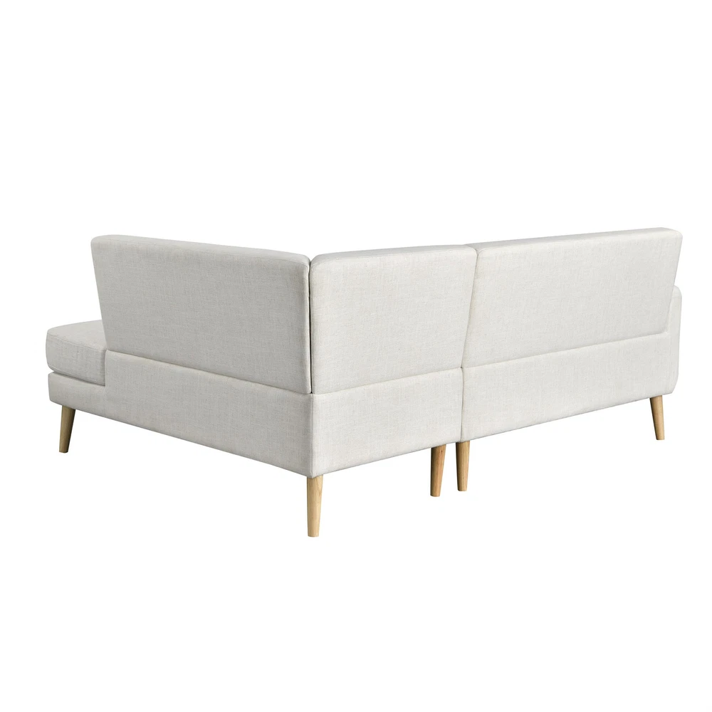 Introducing the Solano Bumper Sectional Sofa, a perfect blend of durability and comfort. This sofa features a kiln-dried solid hardwood frame and sturdy rubber wood legs, ensuring long-lasting support. With pocket coils and high-density foams, it provides exceptional comfort. The removable seat and back cushions add versatility and ease of maintenance, while the quality cream fabric upholstery offers a touch of elegance to any living space. Features: Kiln-dried solid hardwood frame for durability Sturdy rubber wood legs Pocket coils and high-density foams for superior comfort Removable seat and back cushions for easy maintenance Lovesesat and chaise sectional Easy tooless assembly Specifications: Sectional Dimensions: 83.5" W x 63.4" D x 35.4" H Seat Dimensions: 102.7" W x 21.7" D x 19.7" H Arm Height: 25.4" Arm Width: 4.7"
