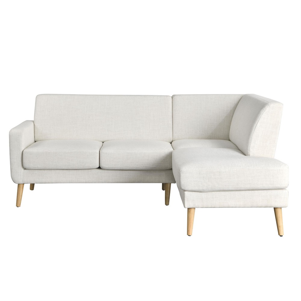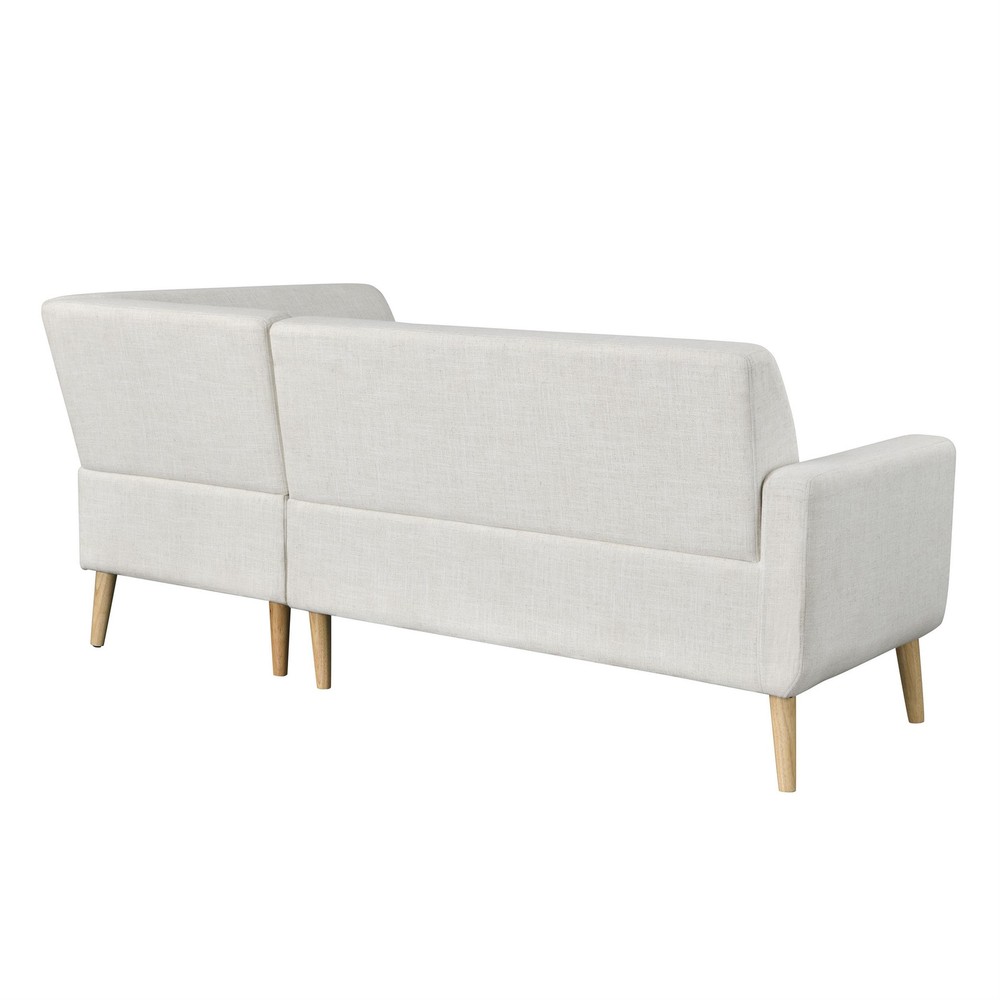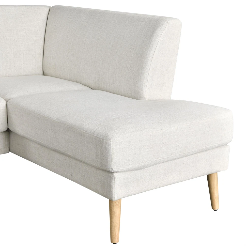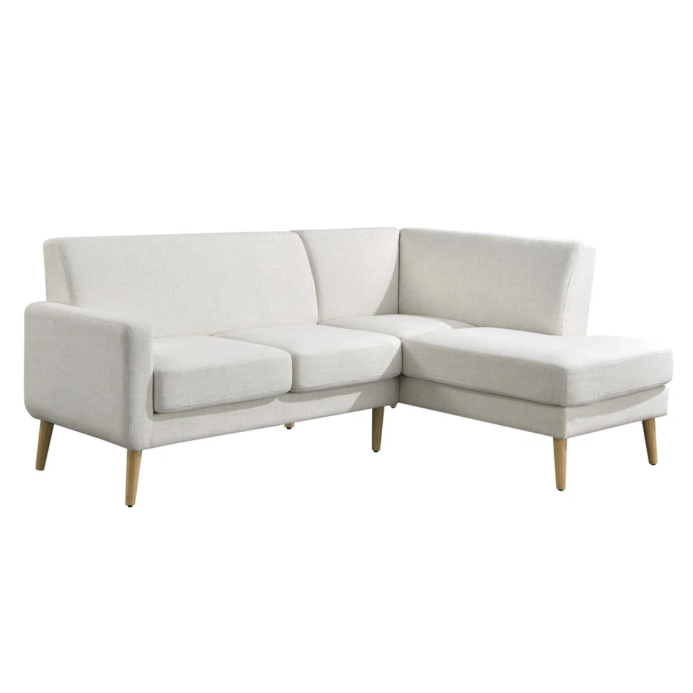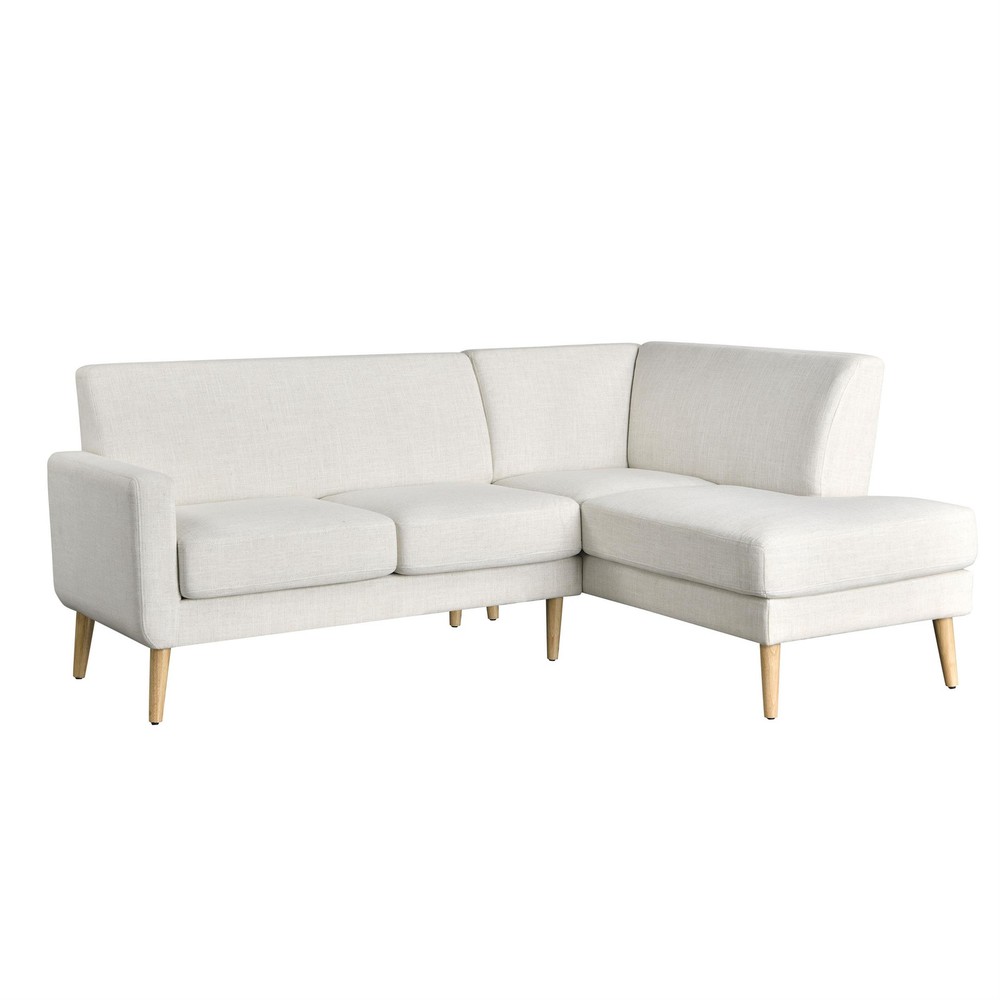 Introducing the Solano Bumper Sectional Sofa, a perfect blend of durability and comfort. This sofa features a kiln-dried solid hardwood frame and sturdy rubber wood legs, ensuring long-lasting support. With pocket coils and high-density foams, it provides exceptional comfort. The removable seat and back cushions add versatility and ease of maintenance, while the quality cream fabric upholstery offers a touch of elegance to any living space. Features: Kiln-dried solid hardwood frame for durability Sturdy rubber wood legs Pocket coils and high-density foams for superior comfort Removable seat and back cushions for easy maintenance Lovesesat and chaise sectional Easy tooless assembly Specifications: Sectional Dimensions: 83.5" W x 63.4" D x 35.4" H Seat Dimensions: 102.7" W x 21.7" D x 19.7" H Arm Height: 25.4" Arm Width: 4.7"