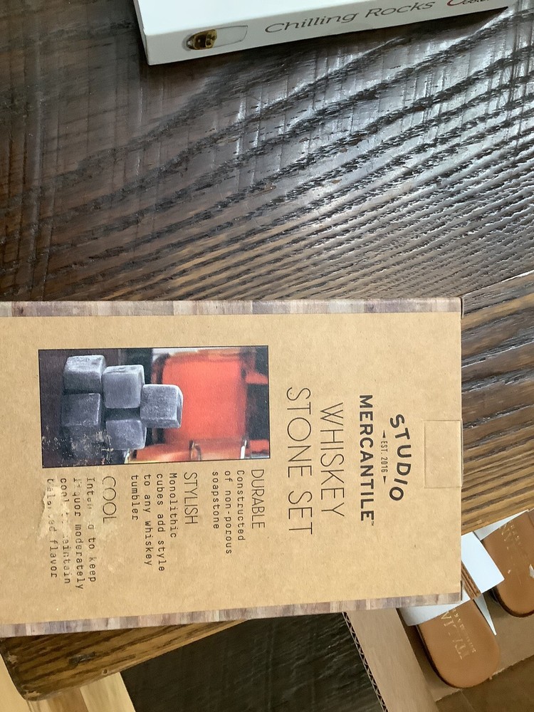 Elevate your whiskey game with this Studio Mercantile 10 piece whiskey stone cubes gift set. Crafted from natural stone, these gray square-shaped whiskey stones provide the perfect way to cool your drink without diluting it. The set includes a convenient pouch for storage and a set of tongs for easy handling. Whether you're a whiskey connoisseur or just enjoy a good drink, these whiskey stones are a must-have accessory for your bar. Add them to your collection of bar tools and accessories today.