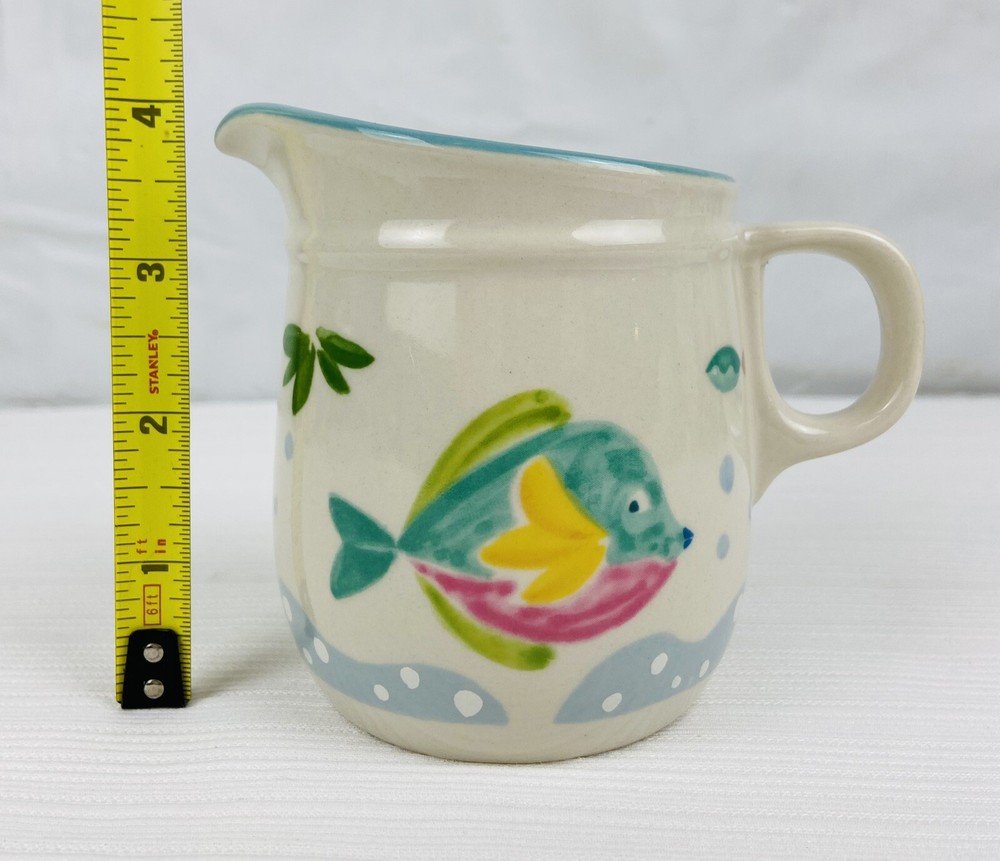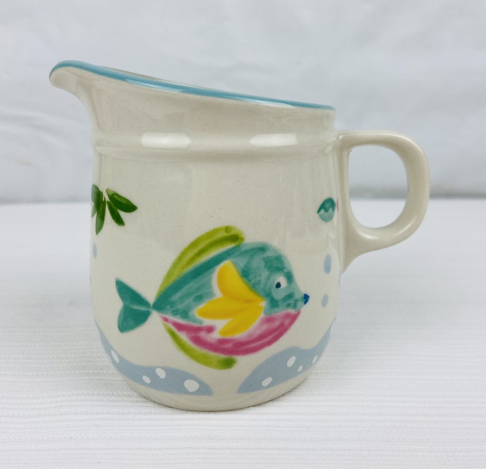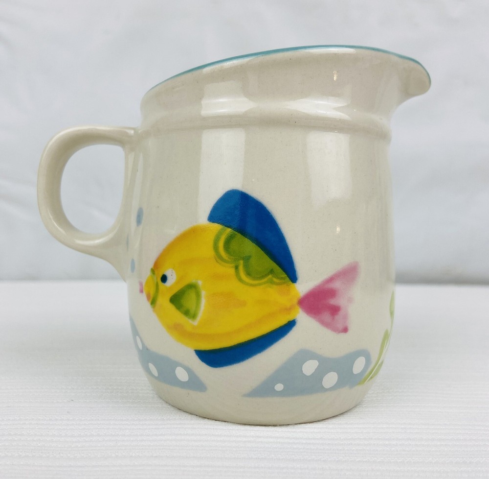 Spice up your kitchen with these Studio Nova Barrier Reef Y2310 Salt and Pepper Shakers. These vintage 1990s shakers feature a multicolor fish pattern and are made of durable stoneware material. The set includes both a pepper shaker and a salt shaker, making it a great addition to any nautical-themed kitchen. These are in unused condition with no issues. Please refer to all of the pictures as they are part of the description. I ship quickly and safely. Shipped via USPS Ground Advantage.